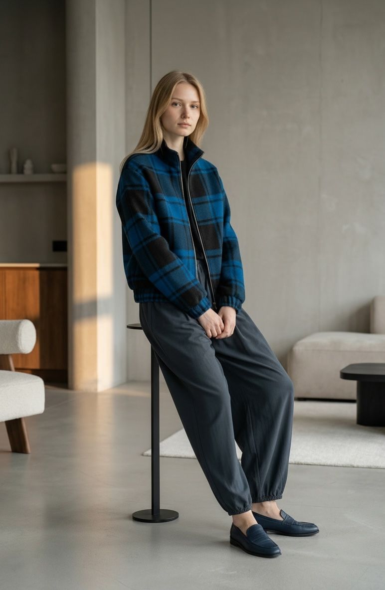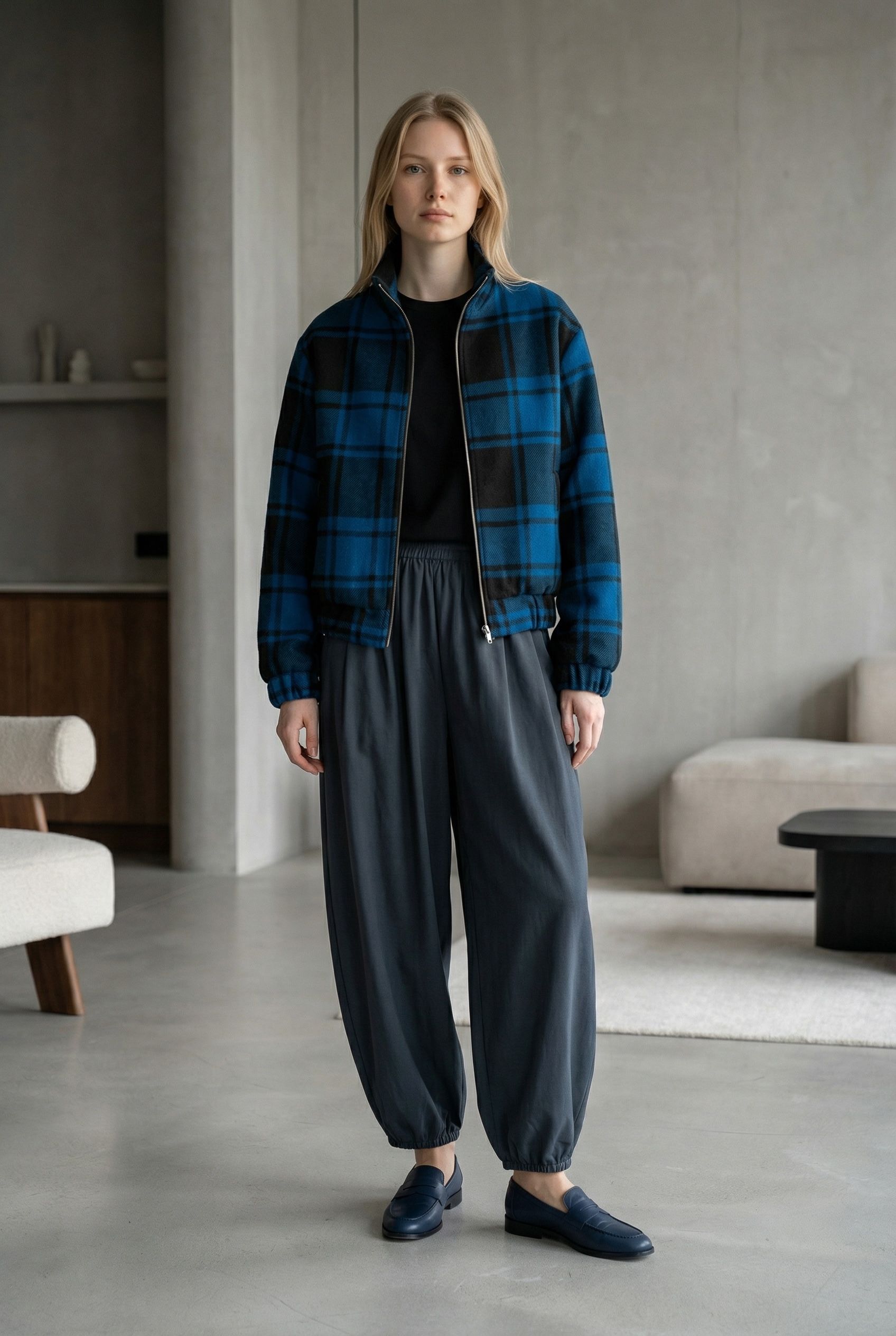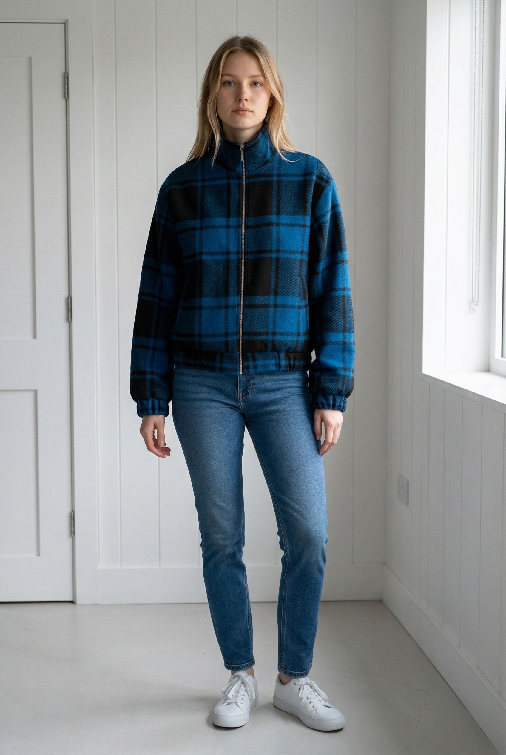 Luźny krój bomberki w połączeniu z wyróżniającą ciepłą wełną 100% w oryginalną kratę niebiesko czarną - sprawia, że BOMBERKA KURTKA TRUE COLOR 100% wełny - może być ciepłym okryciem wierzchnim dla kobiet, ale i dla mężczyzn.