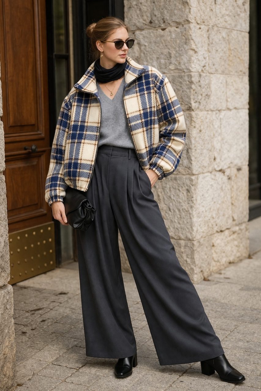 Bomberka świetnie łączy się z eleganckimi spodniami w kant - szarymi, białymi czy w innym kolorze. Idealnie pasuje też do jeansów.
