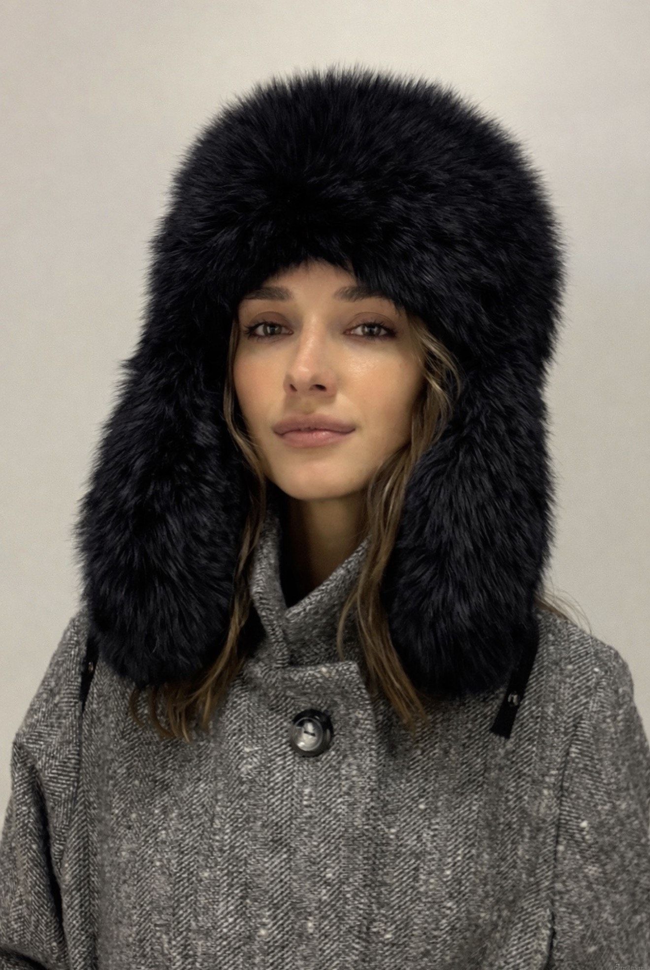Miękka futrzana czapka imitująca futro w kolorze czarnym. Materiał syntetyczny. Bardzo ciepła, idealna na zimę i niskie temperatury.