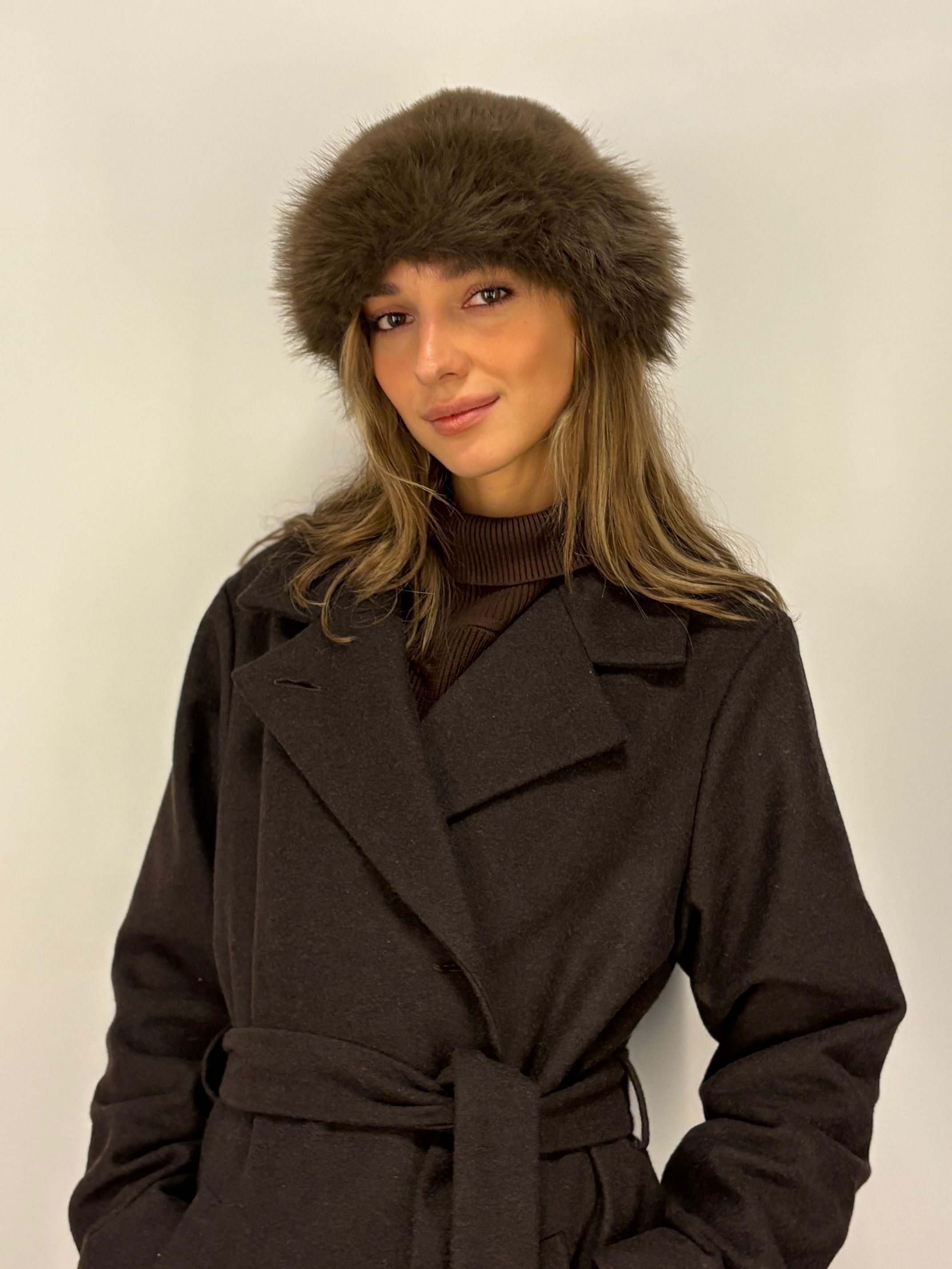 Miękka futrzana czapka imitująca futro. Materiał syntetyczny.