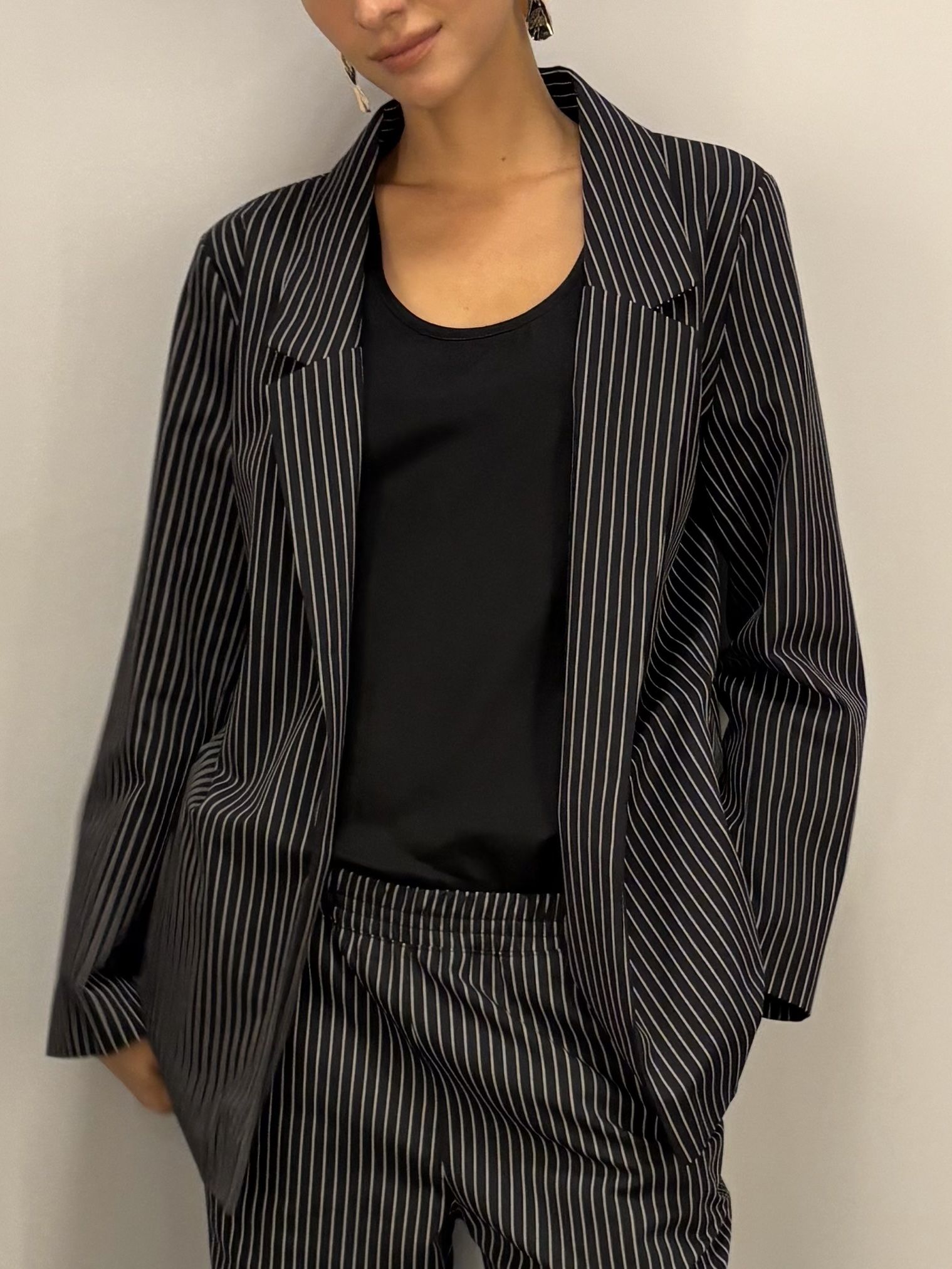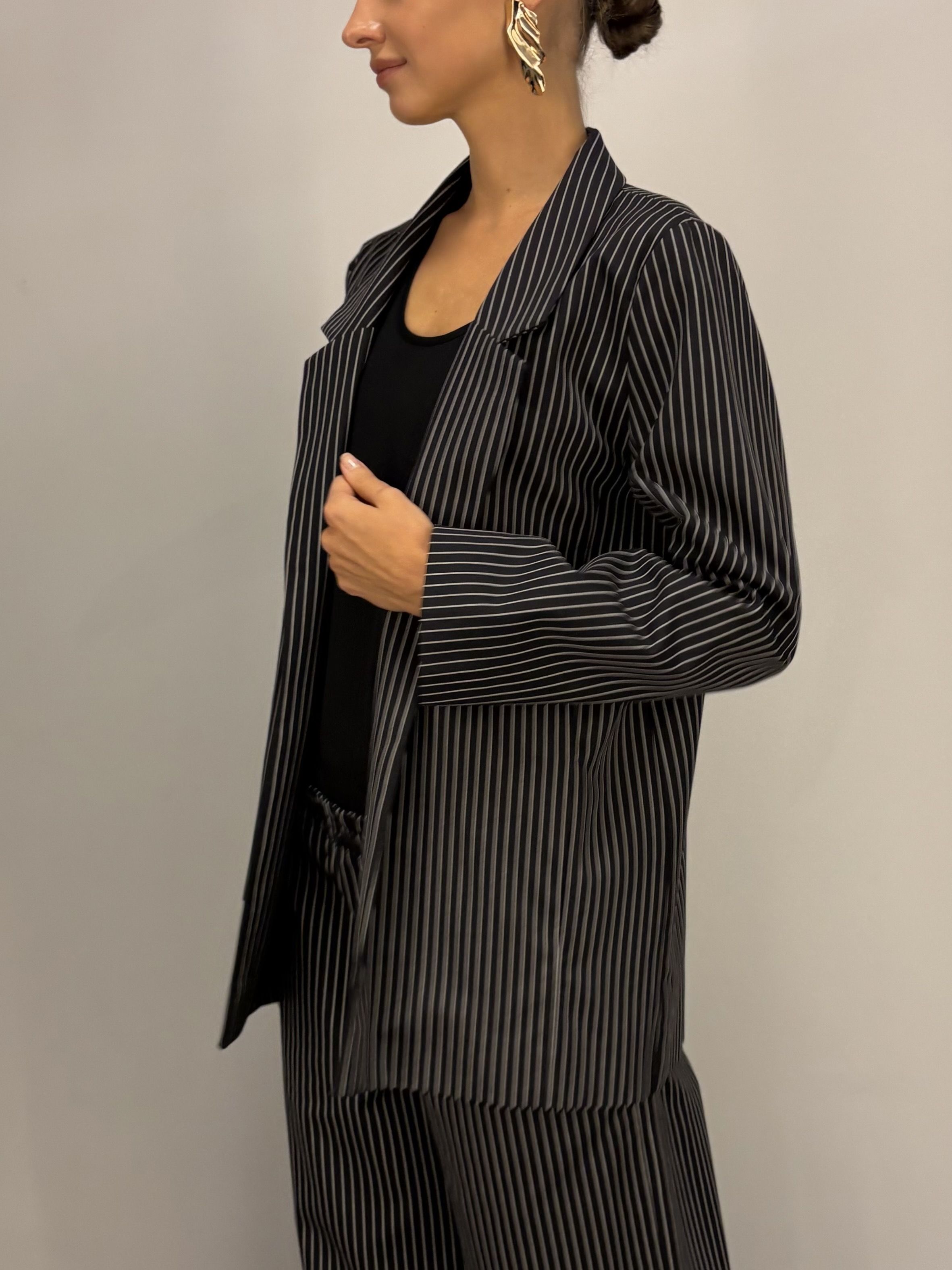 Krótka marynarka bez guzików czarne w białe paski 100% wełna