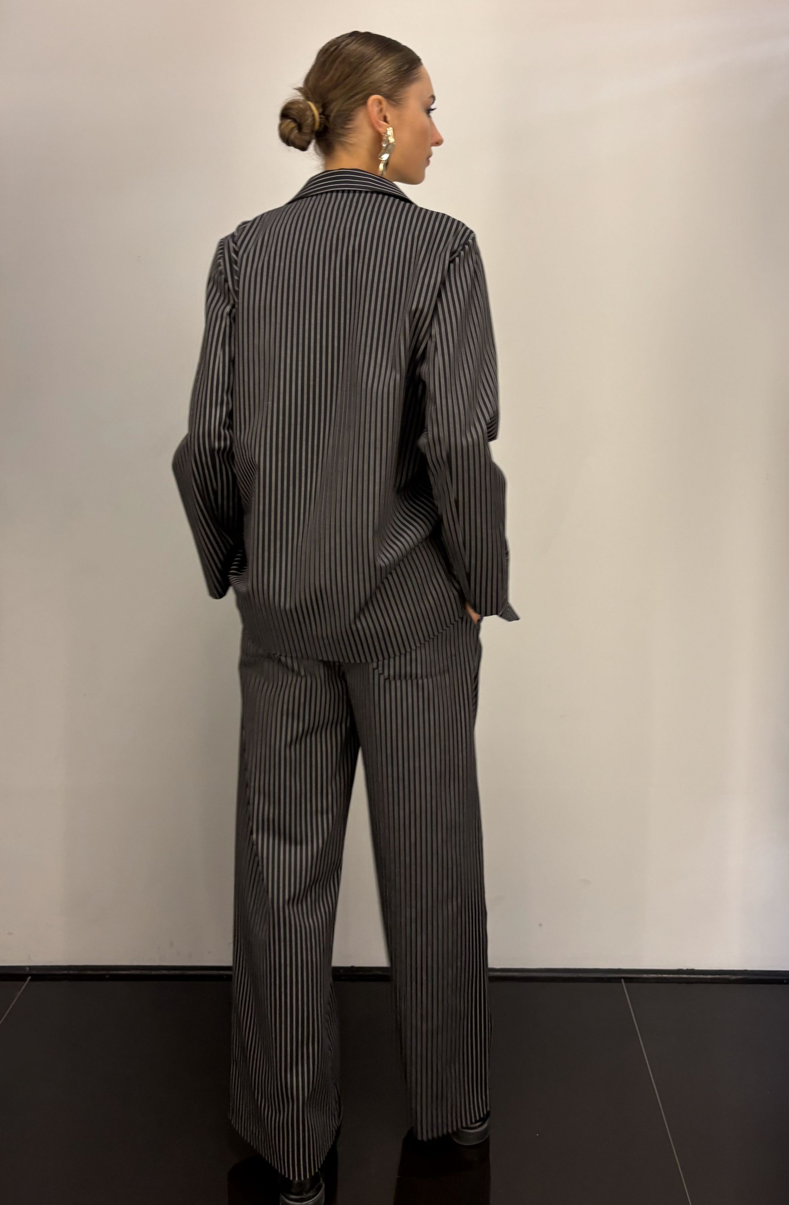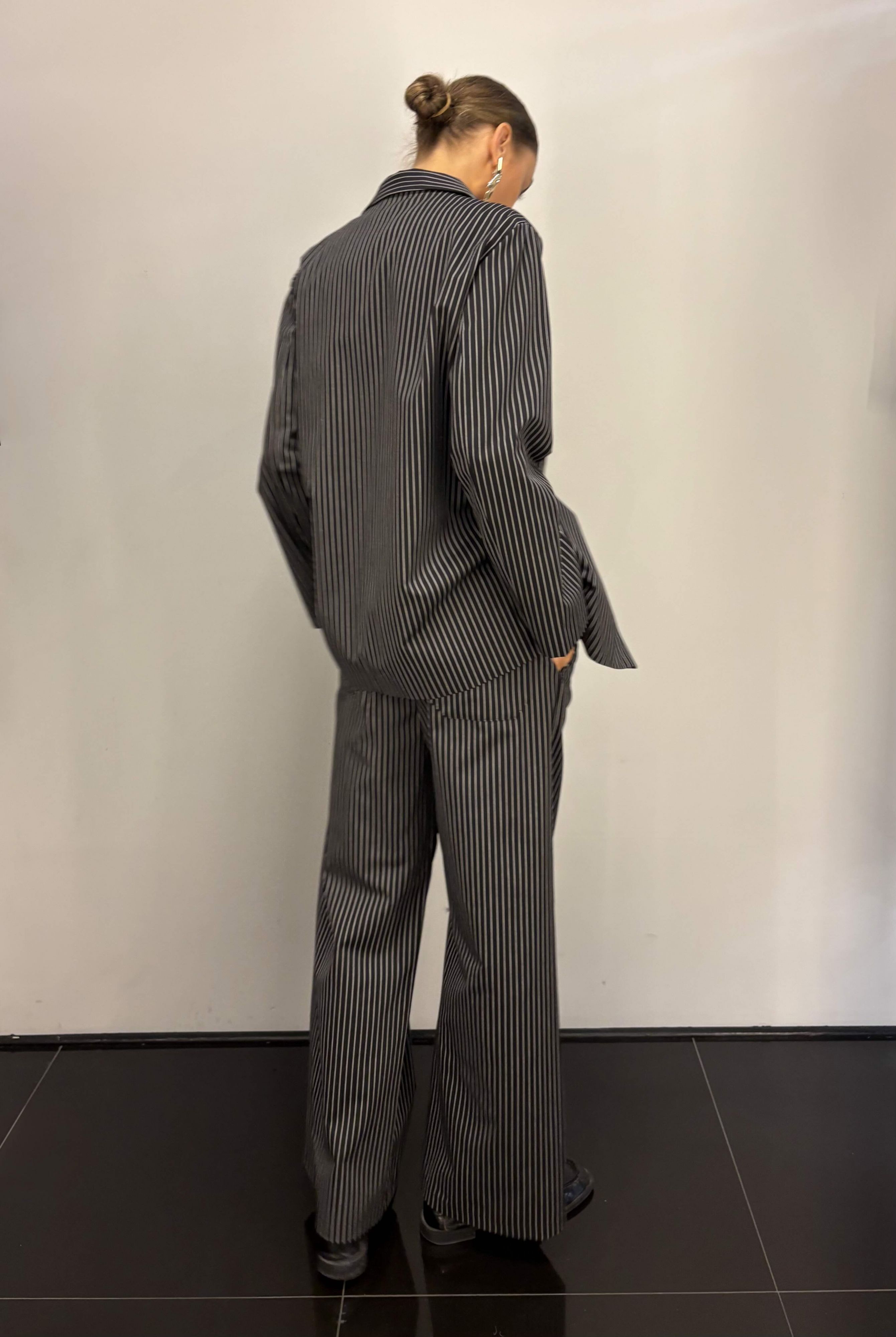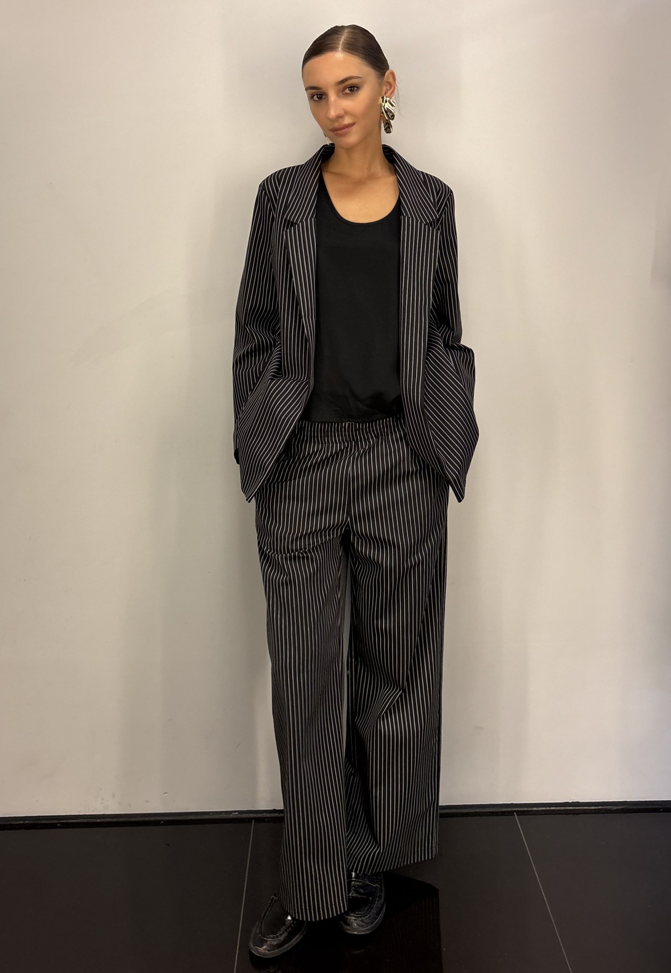 Bestsellerowy klasyczny wełniany swobodny garnitur złożony z lekko oversize'owej marynarki wraz z bestsellerowym modelem spodni - oba pokochane za ponadczasowość, uniwersalizm i bardzo wysoką jakość włoskiej wełny.