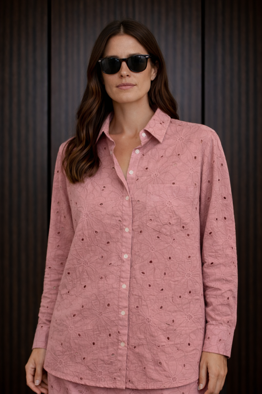 Bawełna 100% brudny róż. Ażurowe wzory.