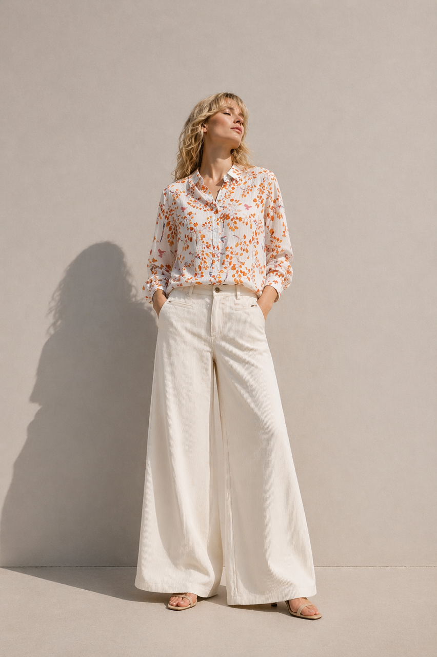 Spodnie KREMOWE sztruksowe szerokie z zakładkami i suwakiem