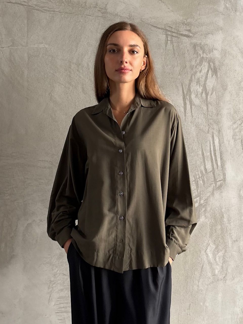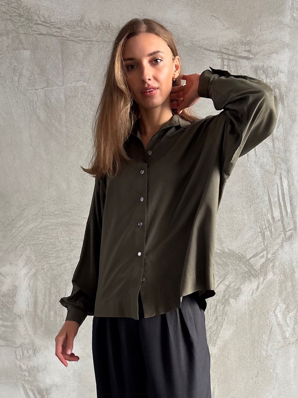 Lekka całoroczna oversize'owa Koszula My Style - wreszcie w Waszej ukochanej tkaninie khaki będącej premium mieszanką jedwabiu i wiskozy.