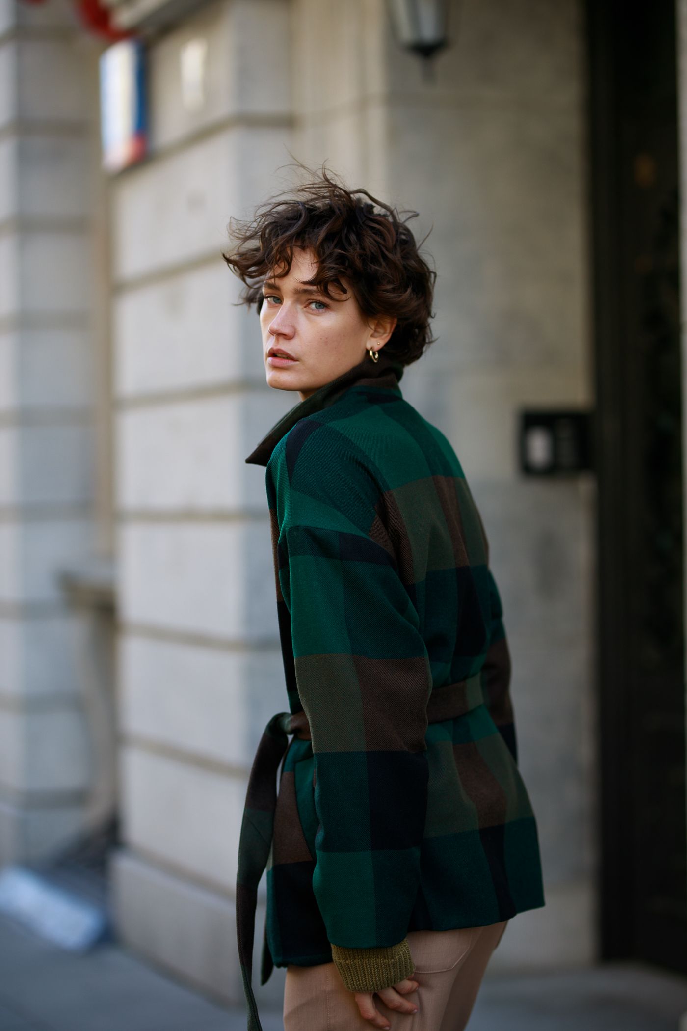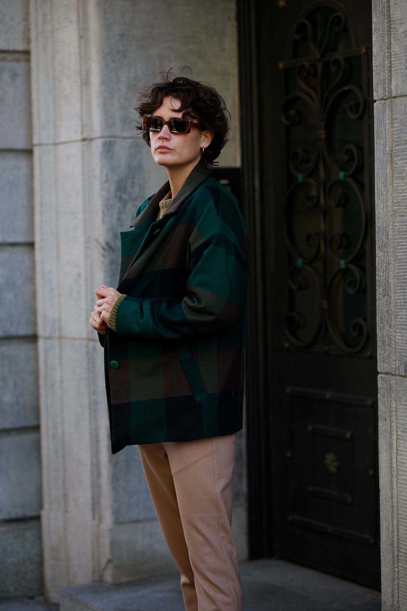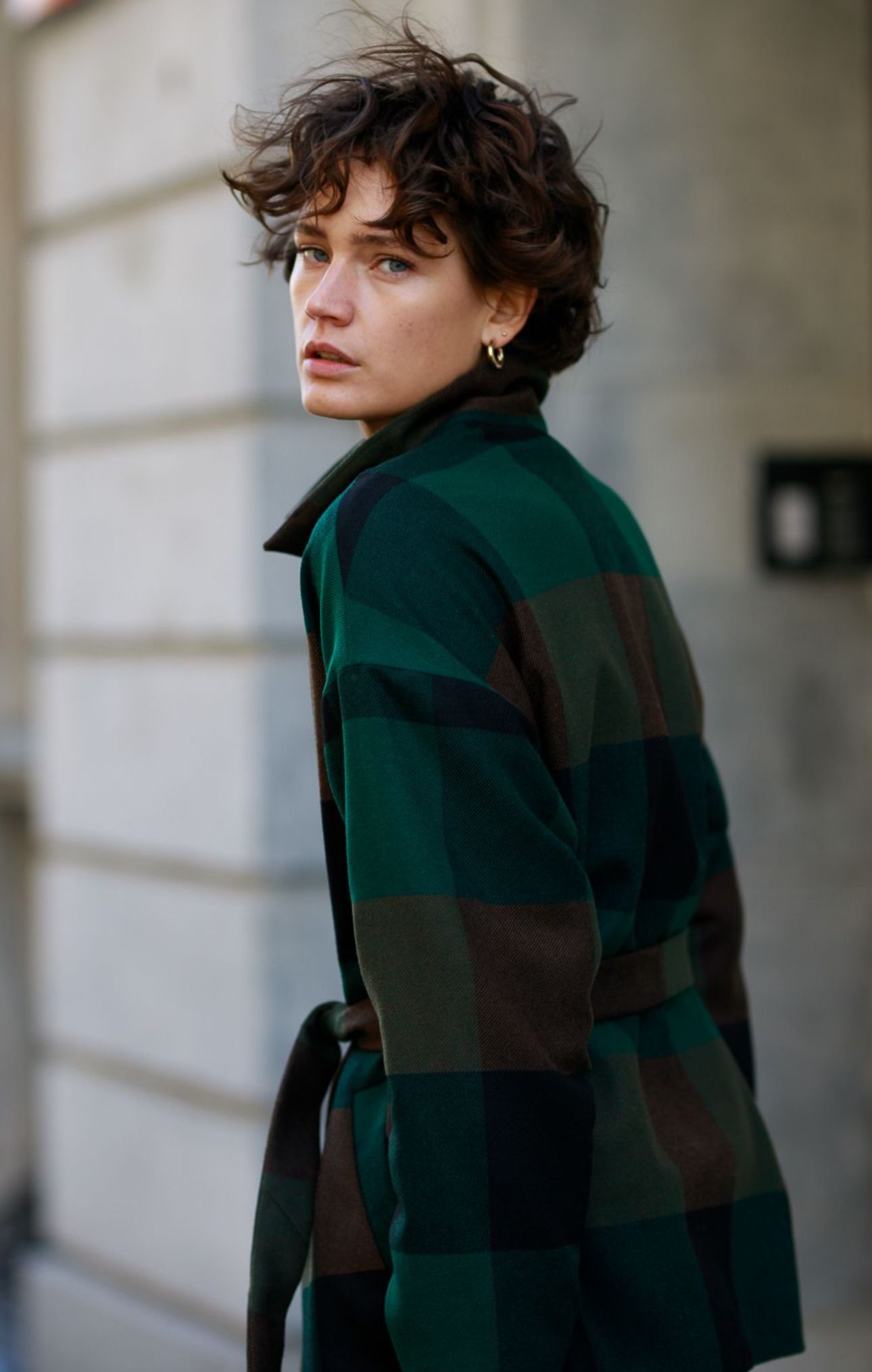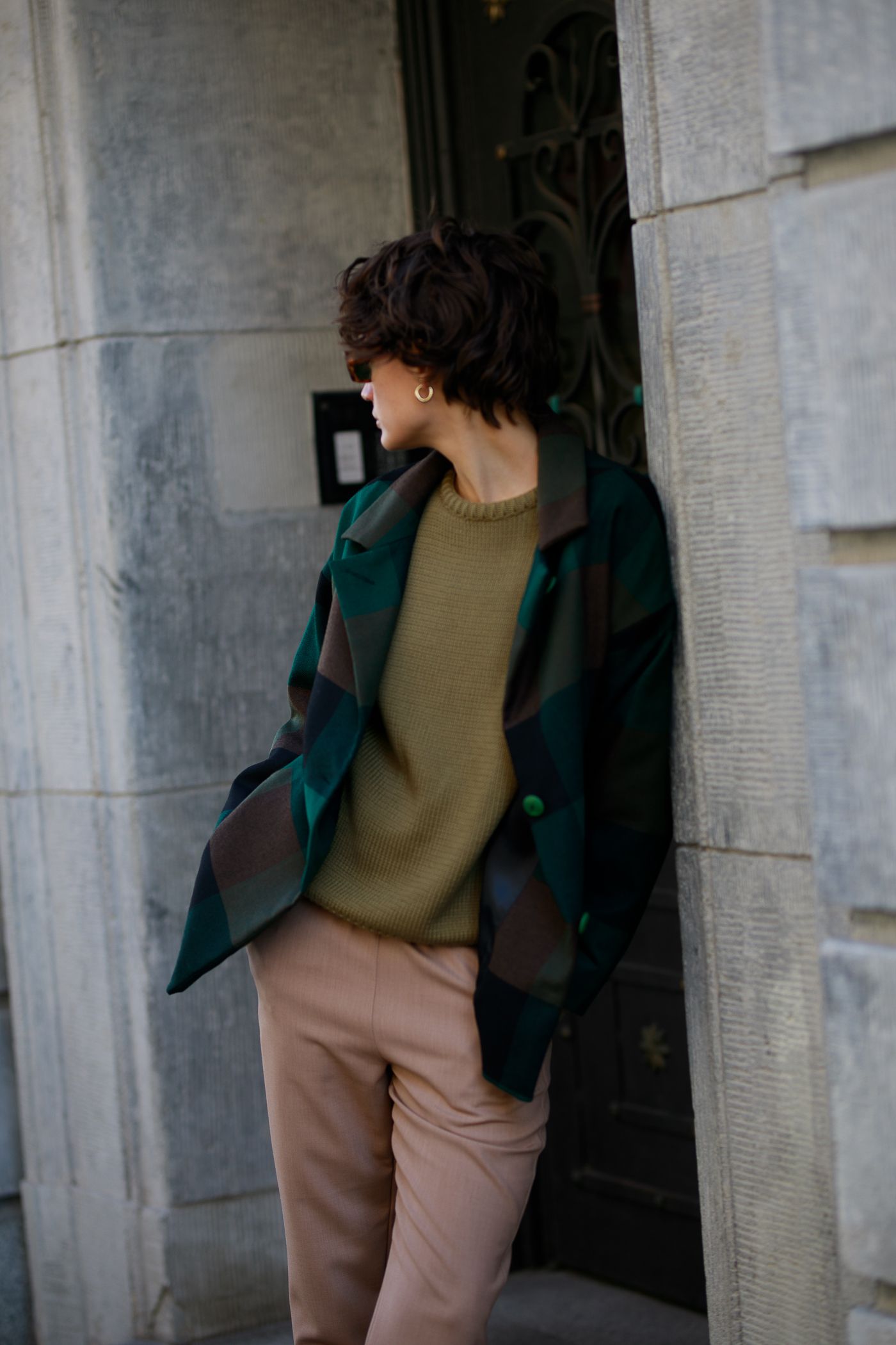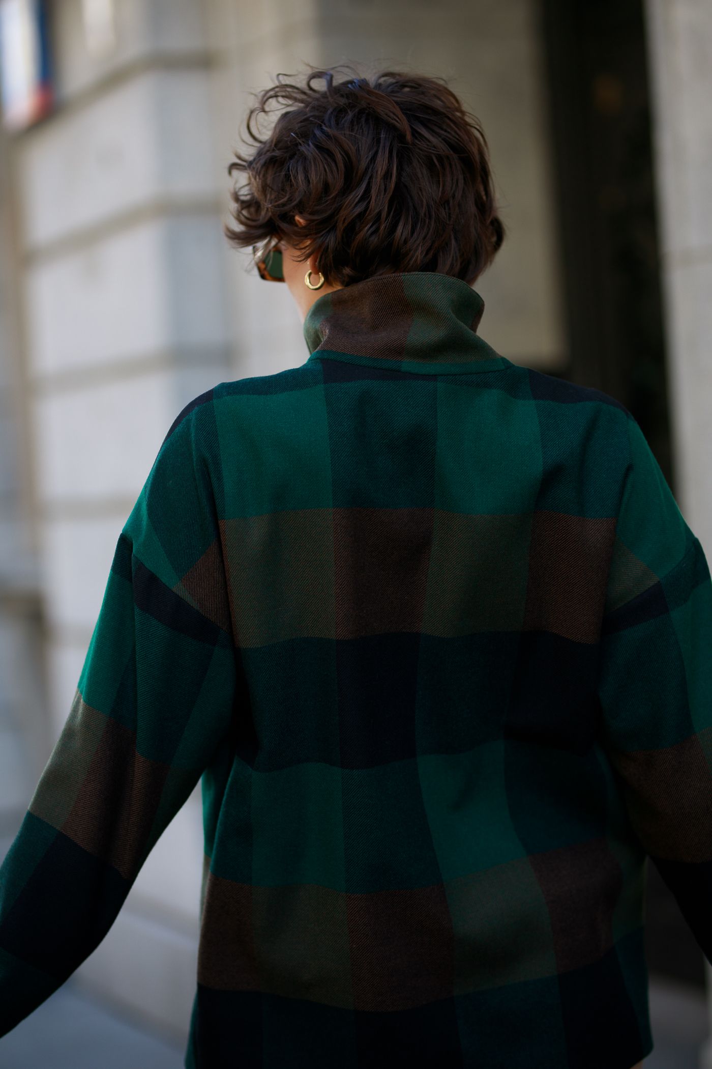 Ciepła wełna w zielono-ciemną kratę - przejściowa, lekka