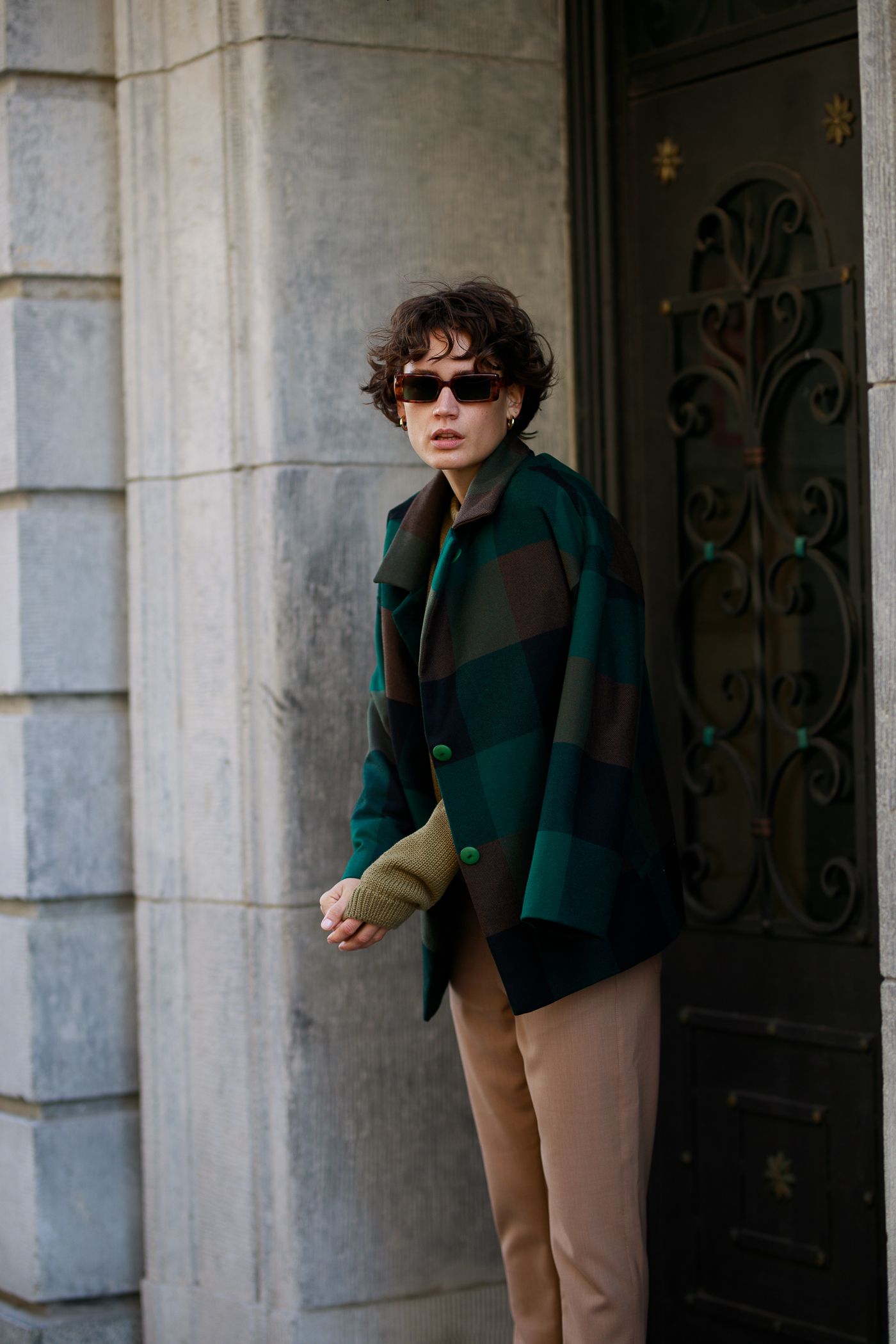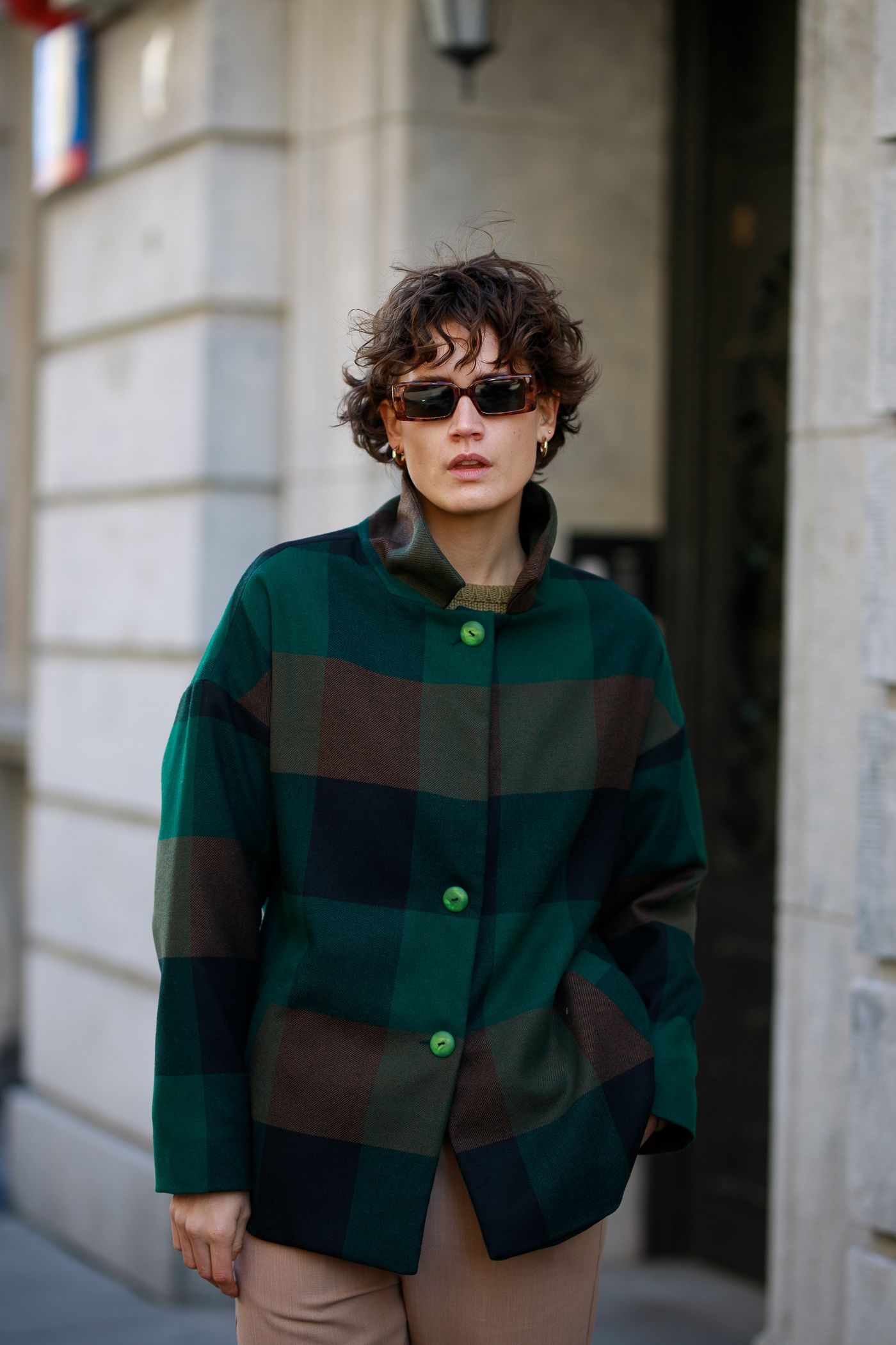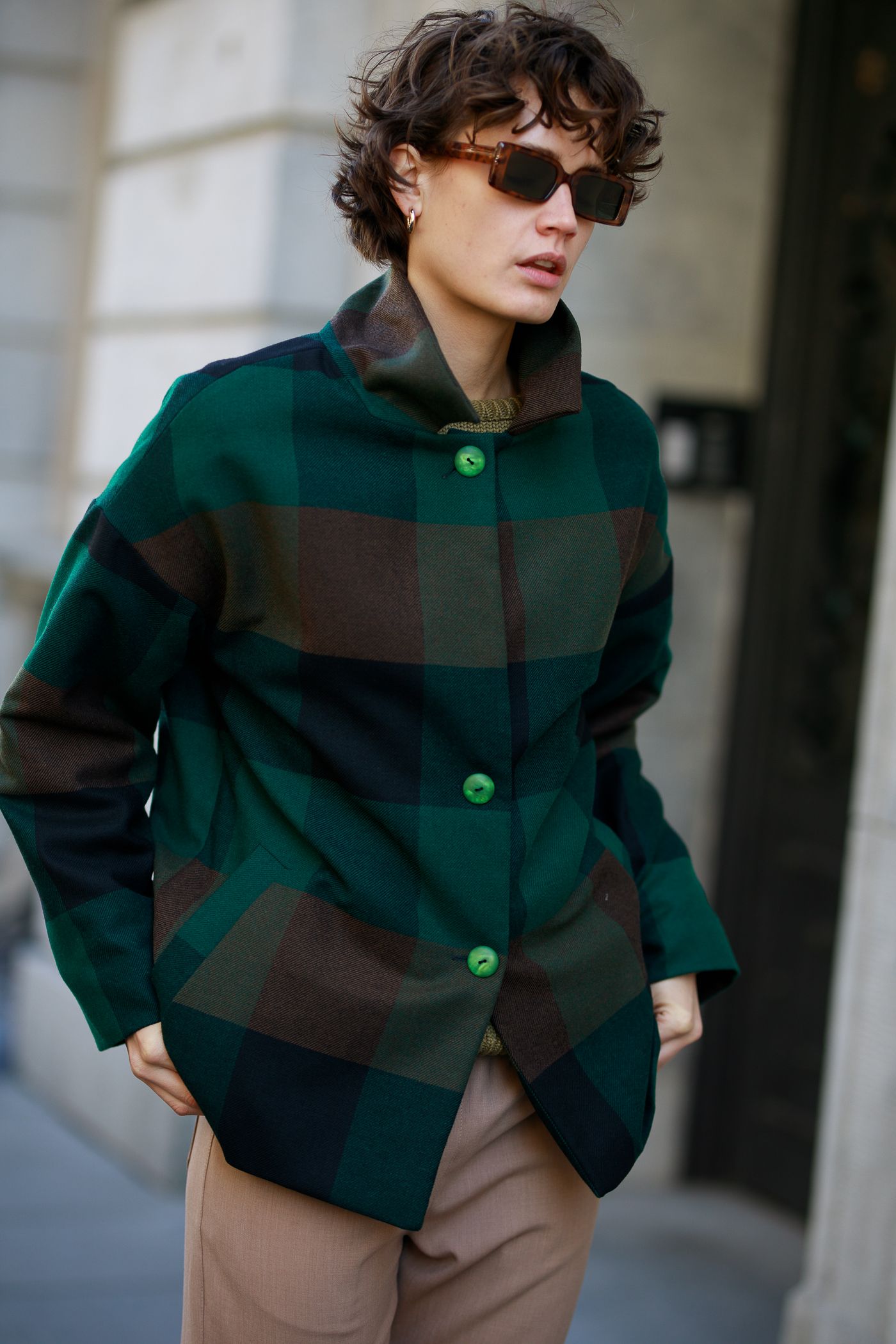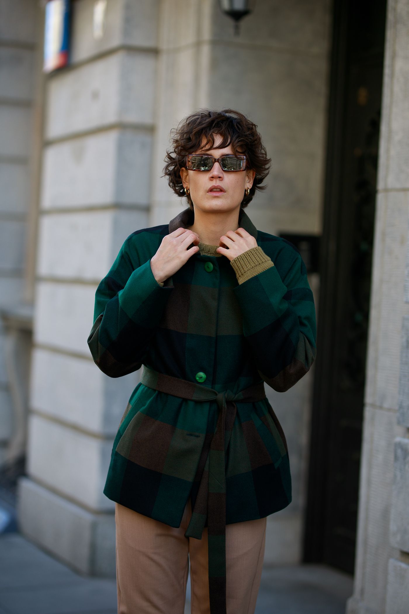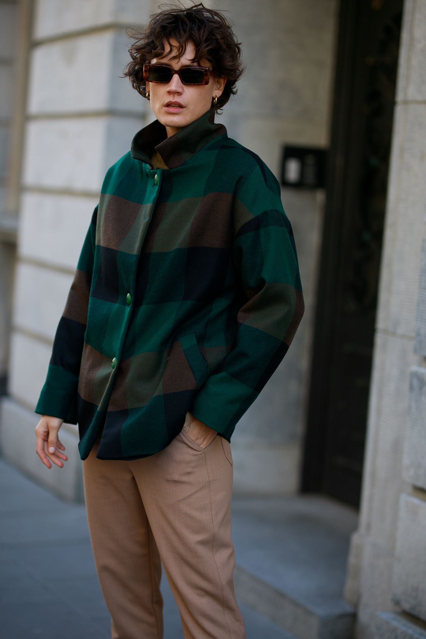Ciepła wełna w zielono-ciemną kratę - przejściowa, lekka