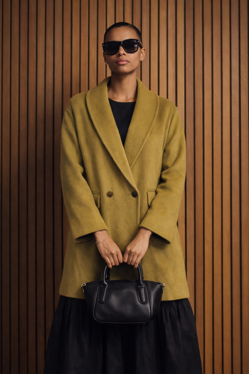 oversize płaszcz z czystej wełny w oryginalnym limonkowym jasnym żółtym odcieniu