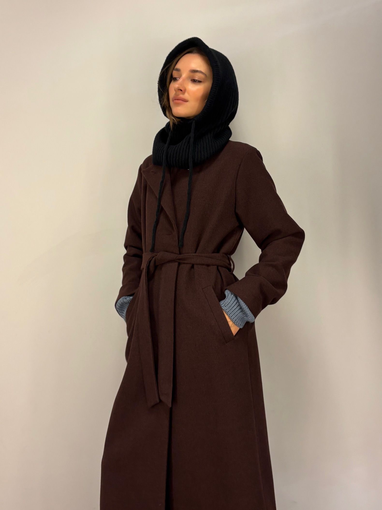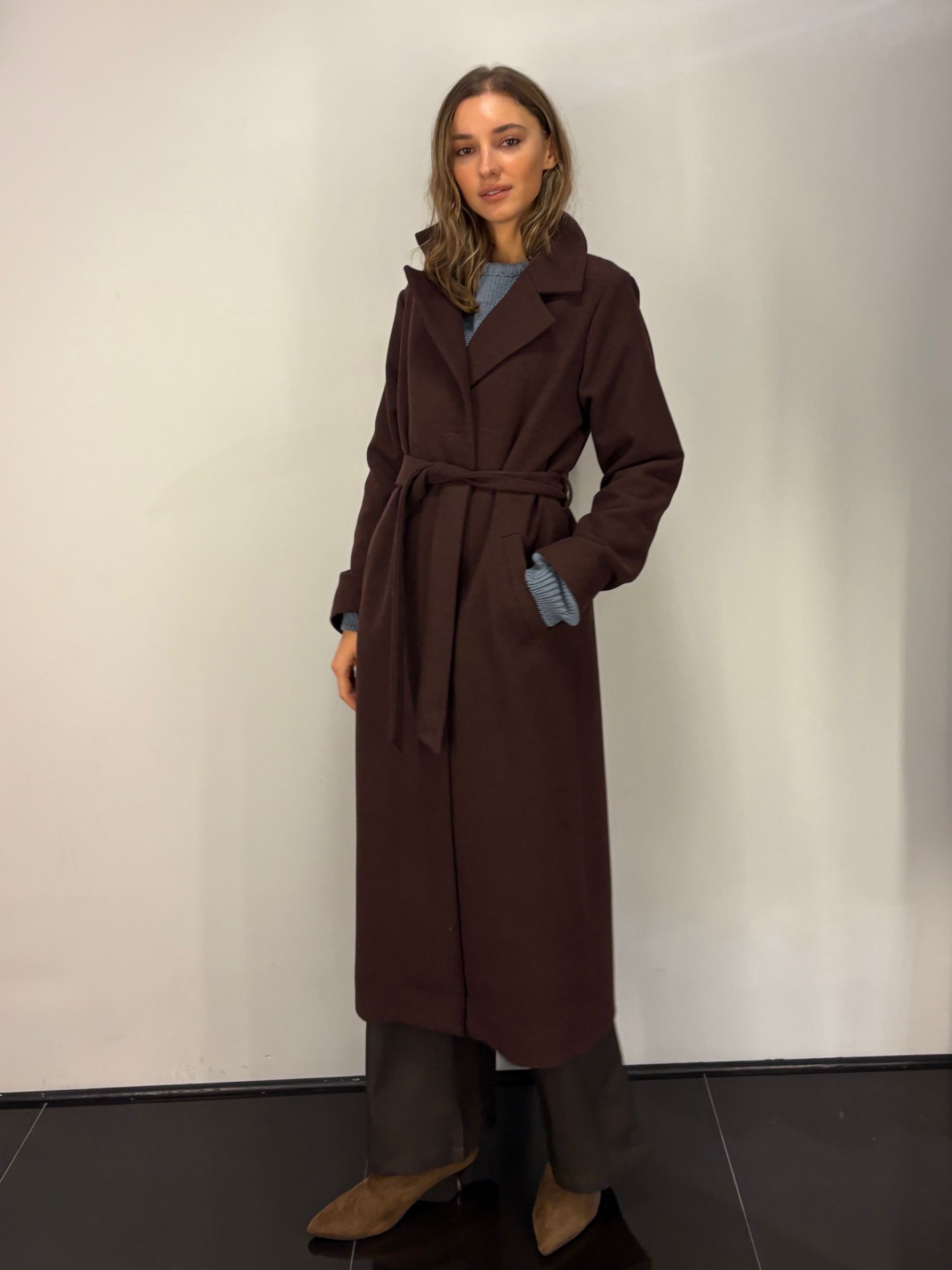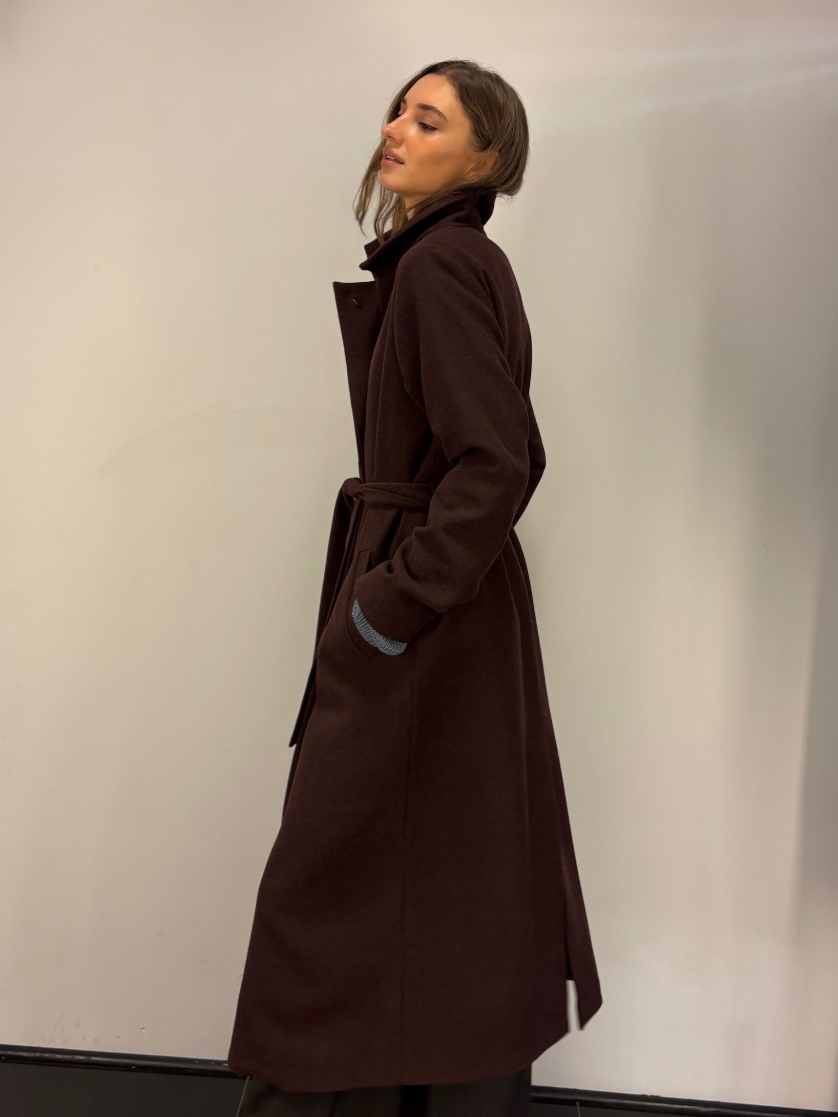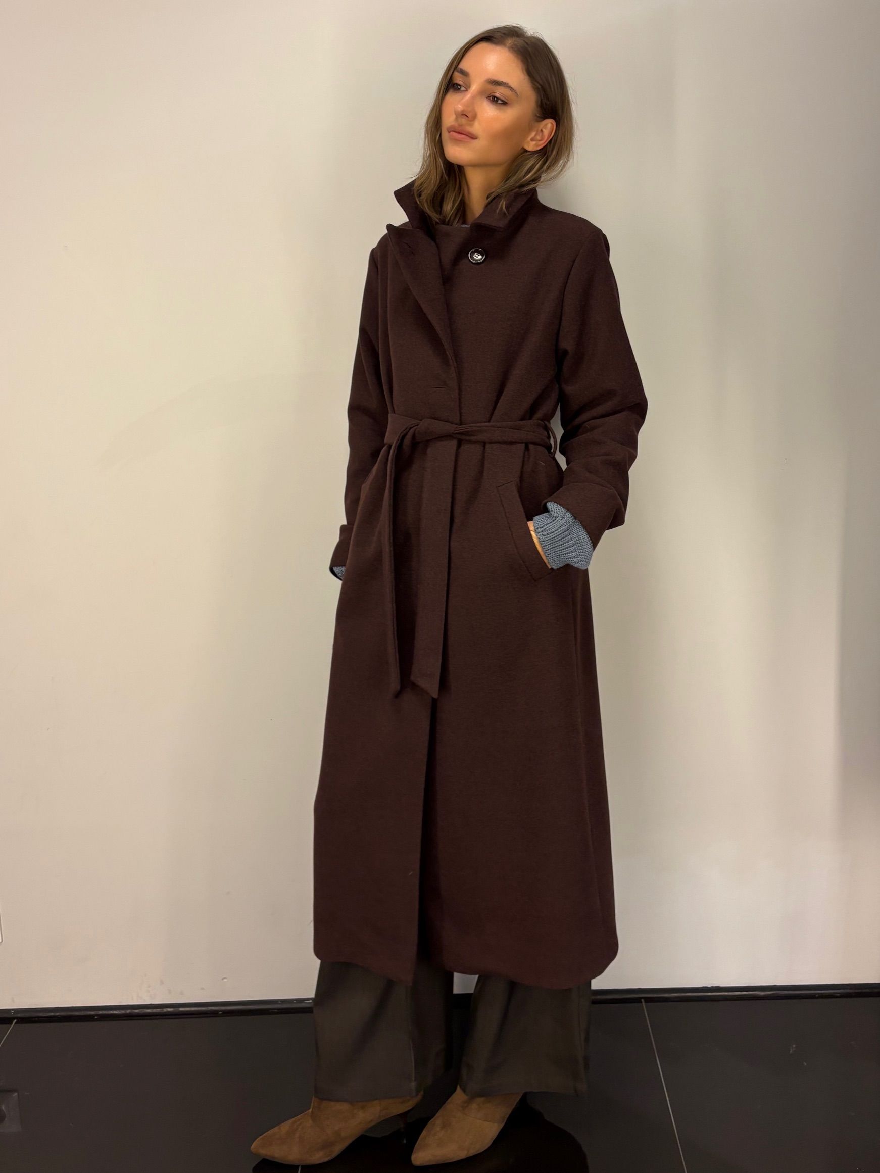 Model DREAM 2, wąski z długim, także wąskim kołnierzem. Wysmukla sylwetkę. Modny i jednocześnie ponadczasowy odcień głębokiego brązu.