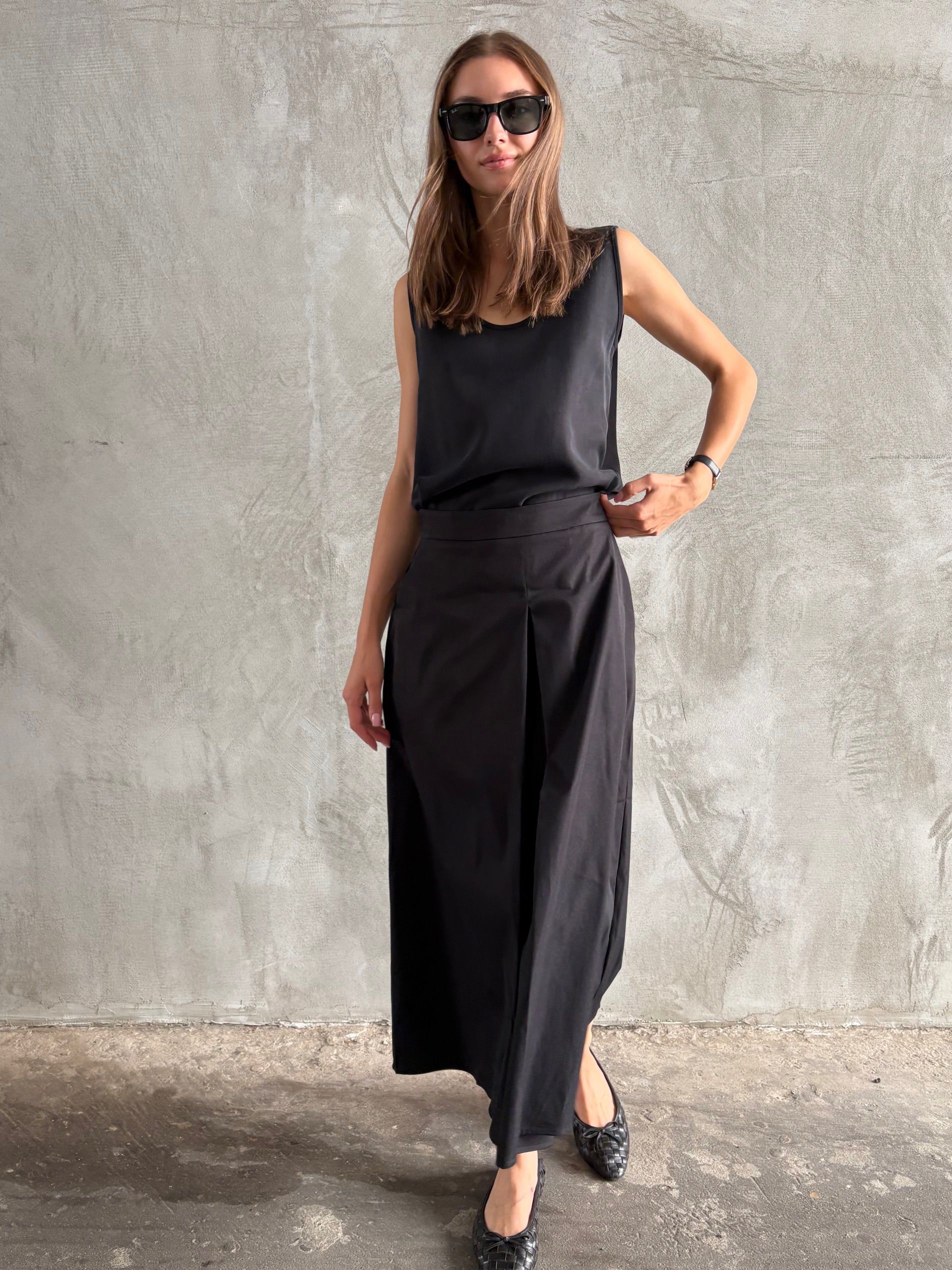A hit this fall and beyond! A classic, long black skirt in a tapestry (A) cut, perfect for any season. Perfect with a sweater, shirt, top (our black one - as pictured), blazer, or t-shirt.