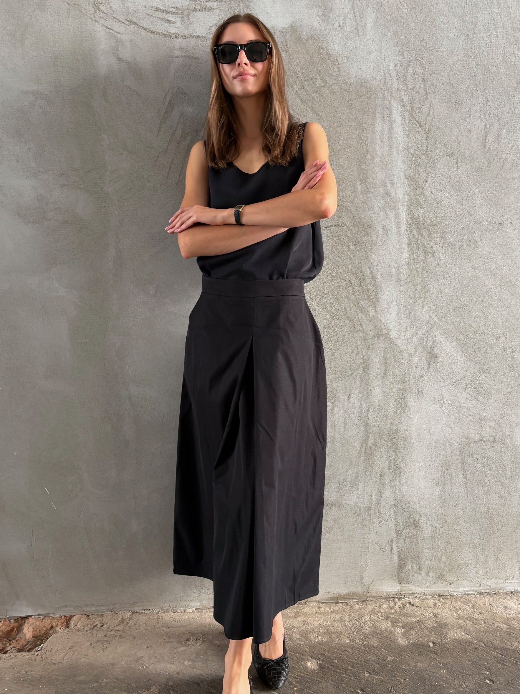 Hit tej jesieni i nie tylko! Czarna klasyczna, długa spódnica, o tapezowym (A) fasonie, do noszenia o każdej porze roku. Idealna w połączeniu ze swetrem, koszulą, topem, (nasz czarny - jak na zdjęciu) marynarka, tshirt