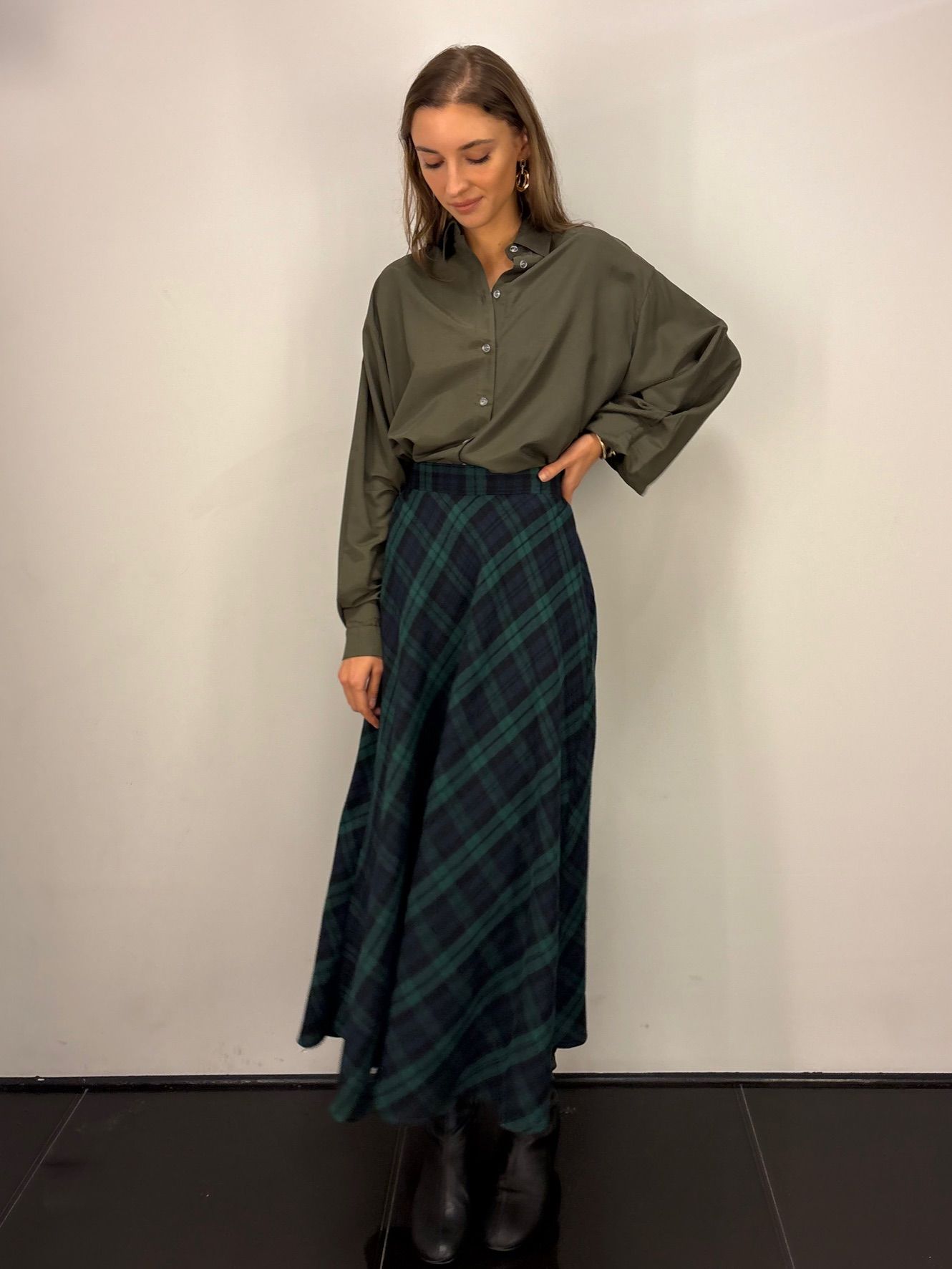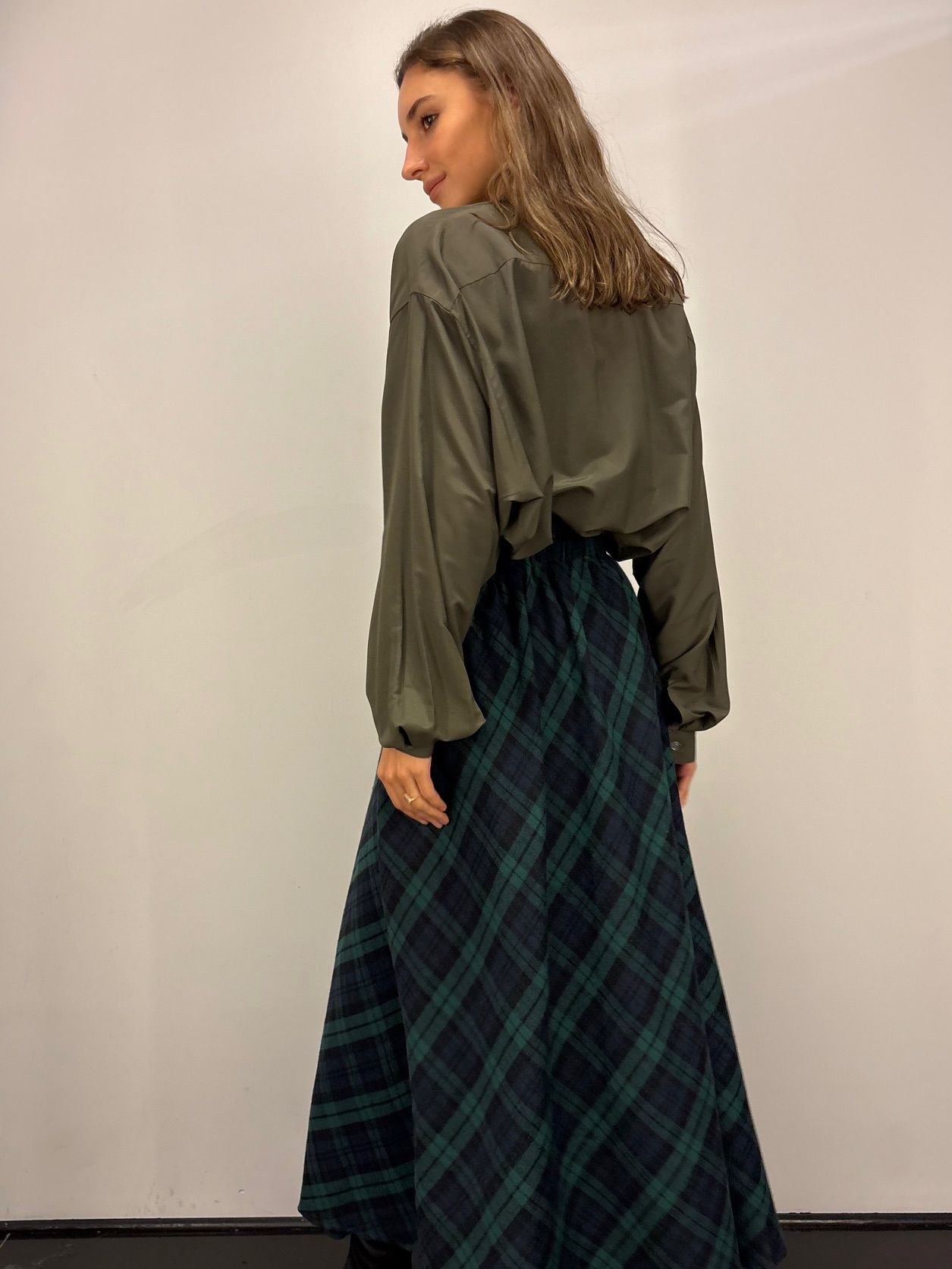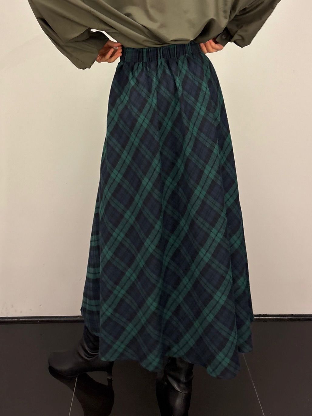 Miękka spódnica w kratę. Materiał ciepły i przyjemny w dotyku. W pasie gumka, dzięki czemu spódnica dopasowuje się do ciała i jest wygodna w noszeniu.