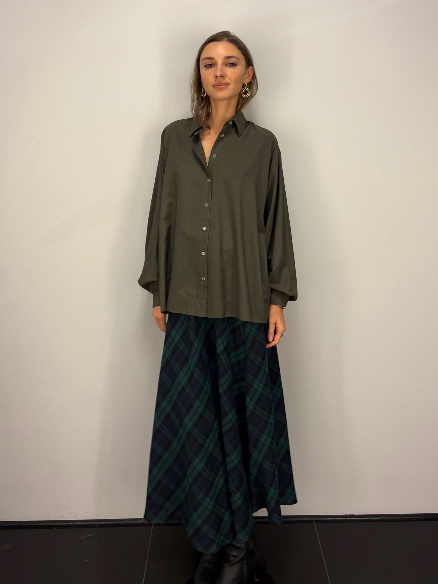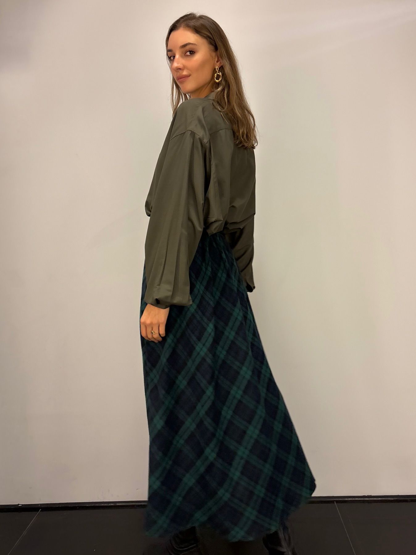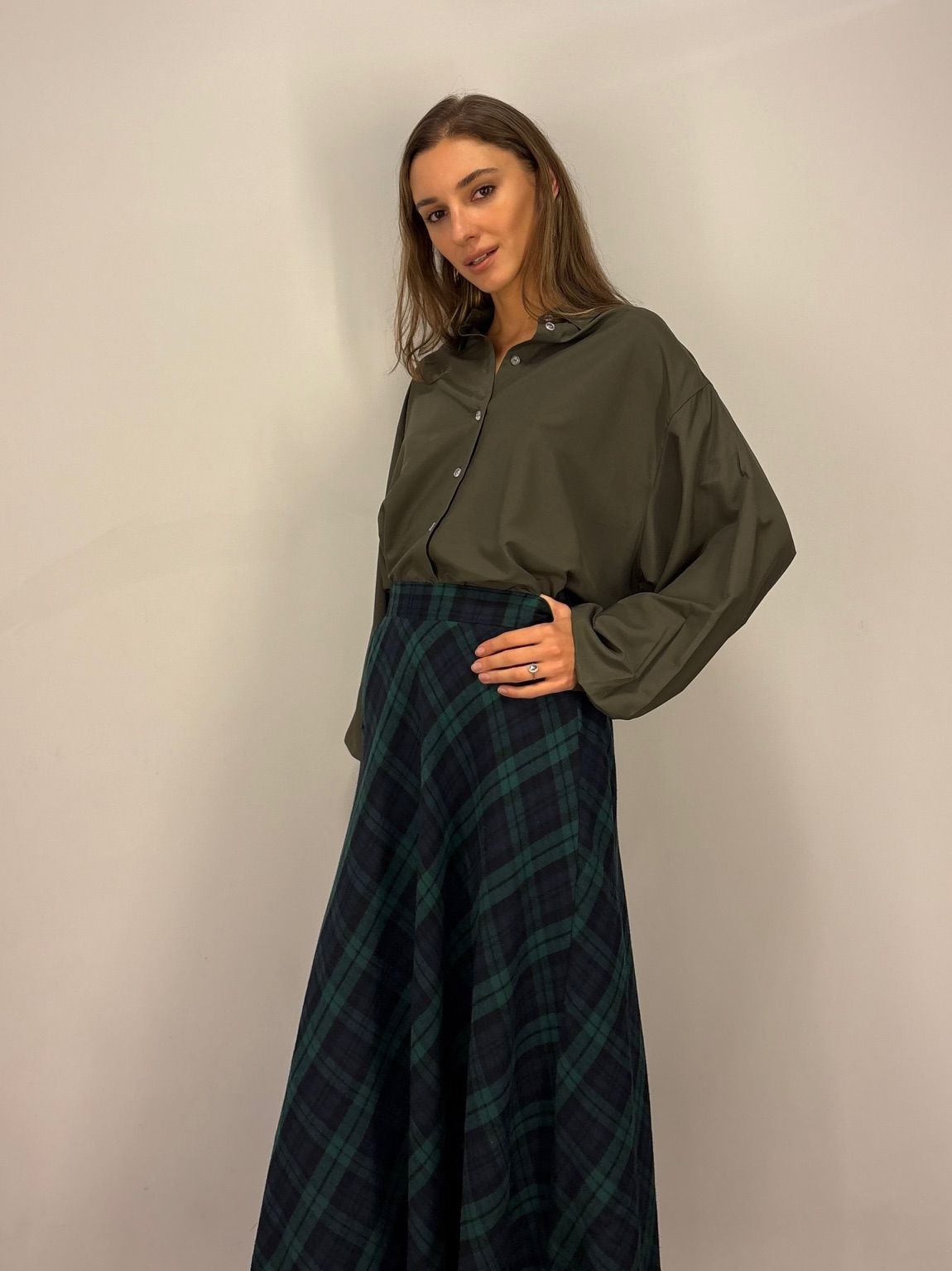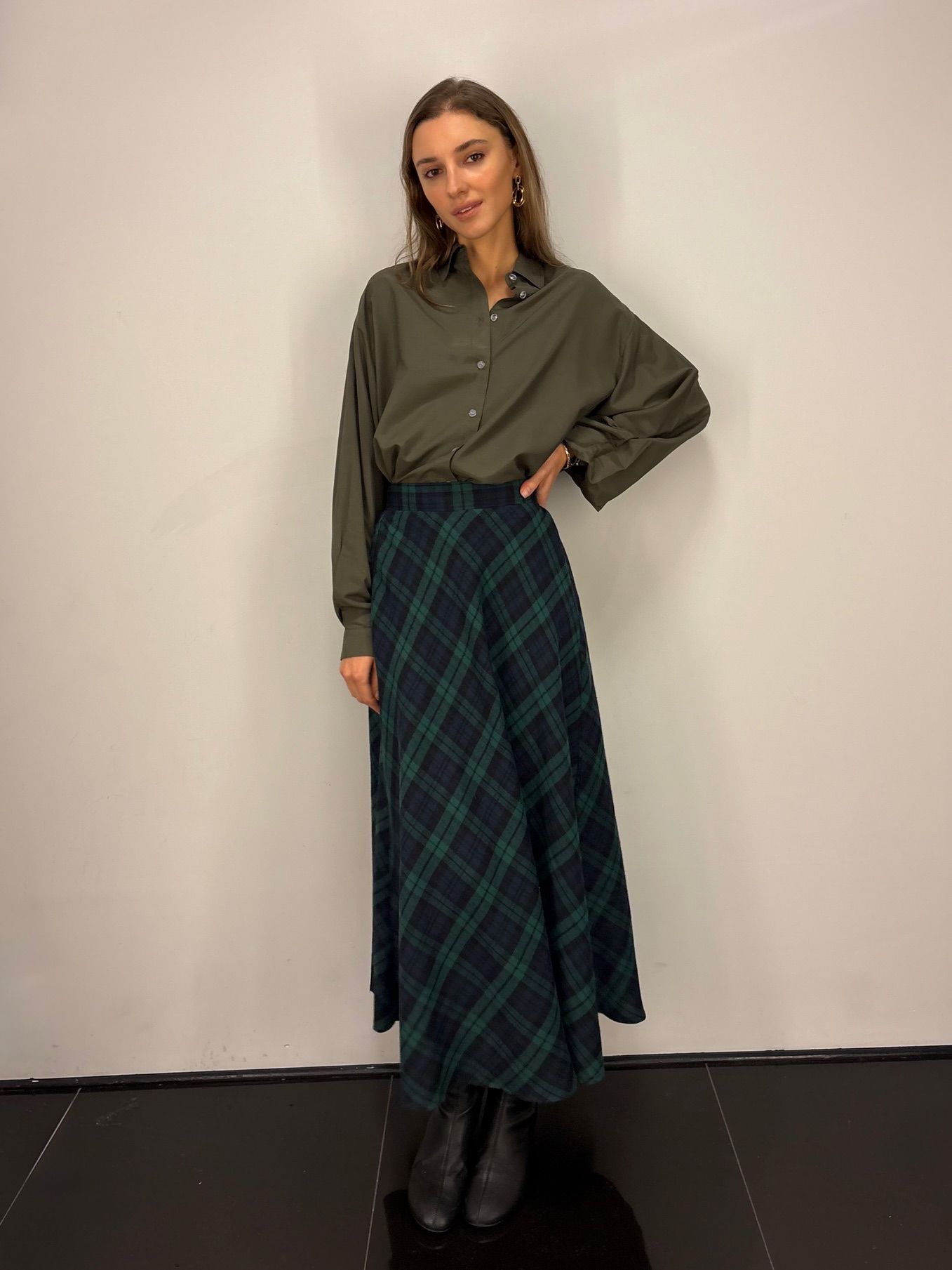 Miękka spódnica w kratę. Materiał ciepły i przyjemny w dotyku. W pasie gumka, dzięki czemu spódnica dopasowuje się do ciała i jest wygodna w noszeniu.