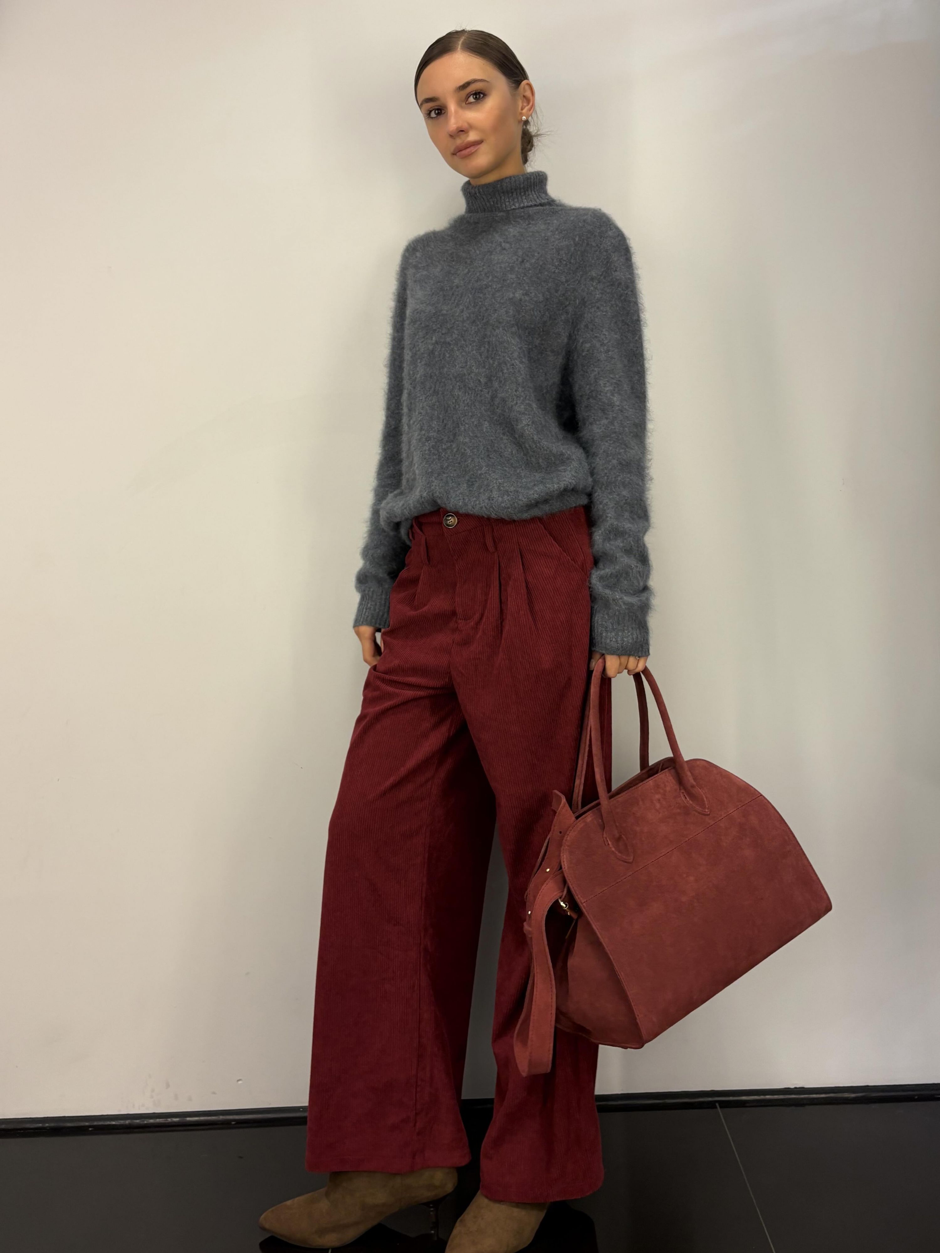 Luźne, sztruksowe spodnie 50% bawełna/50% wiskoza