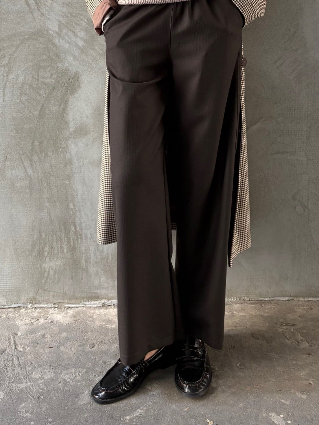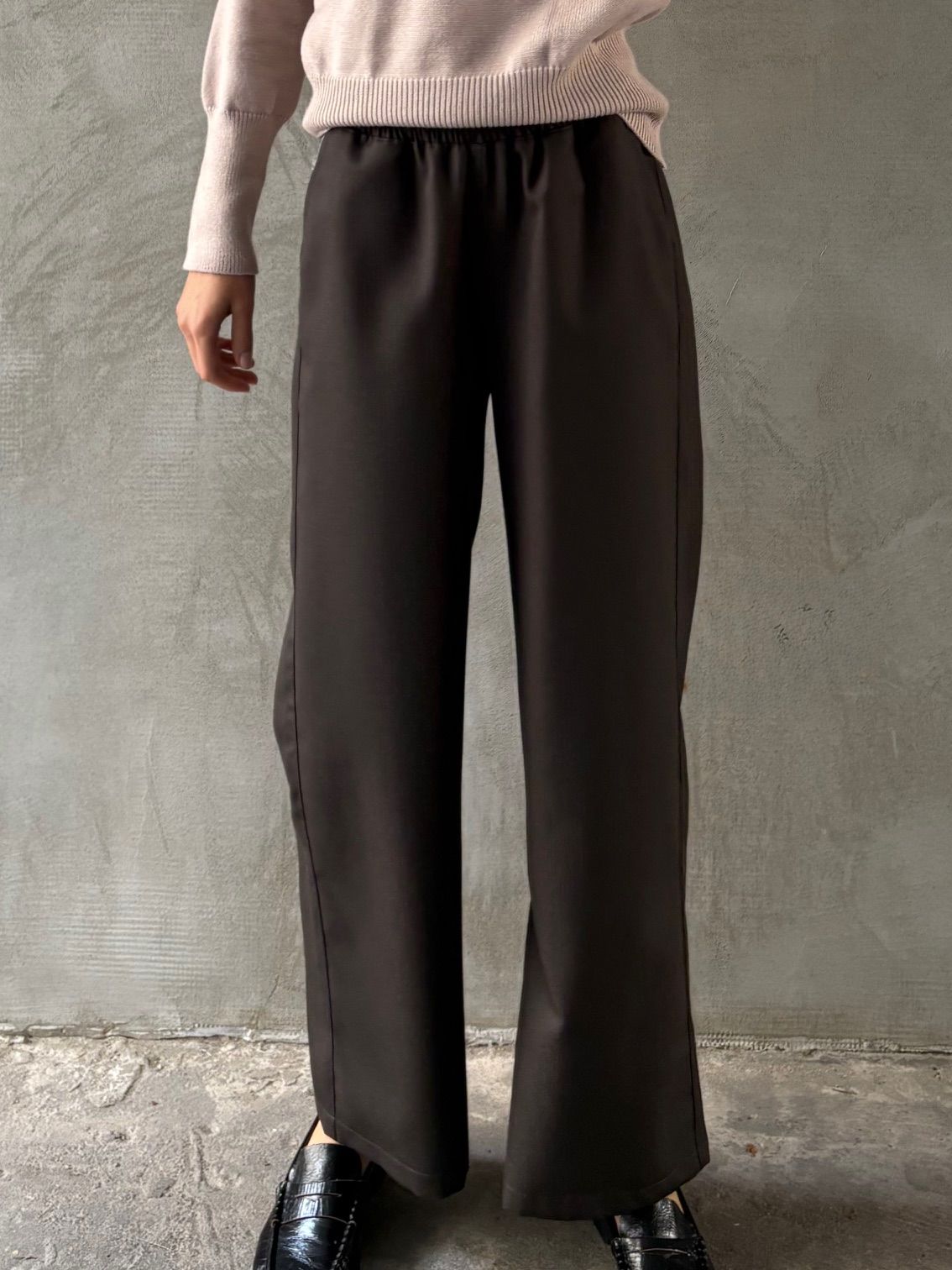 Wygodne, luźne, stylowe spodnie w kolorze neutralnego czekoladowego brązu.