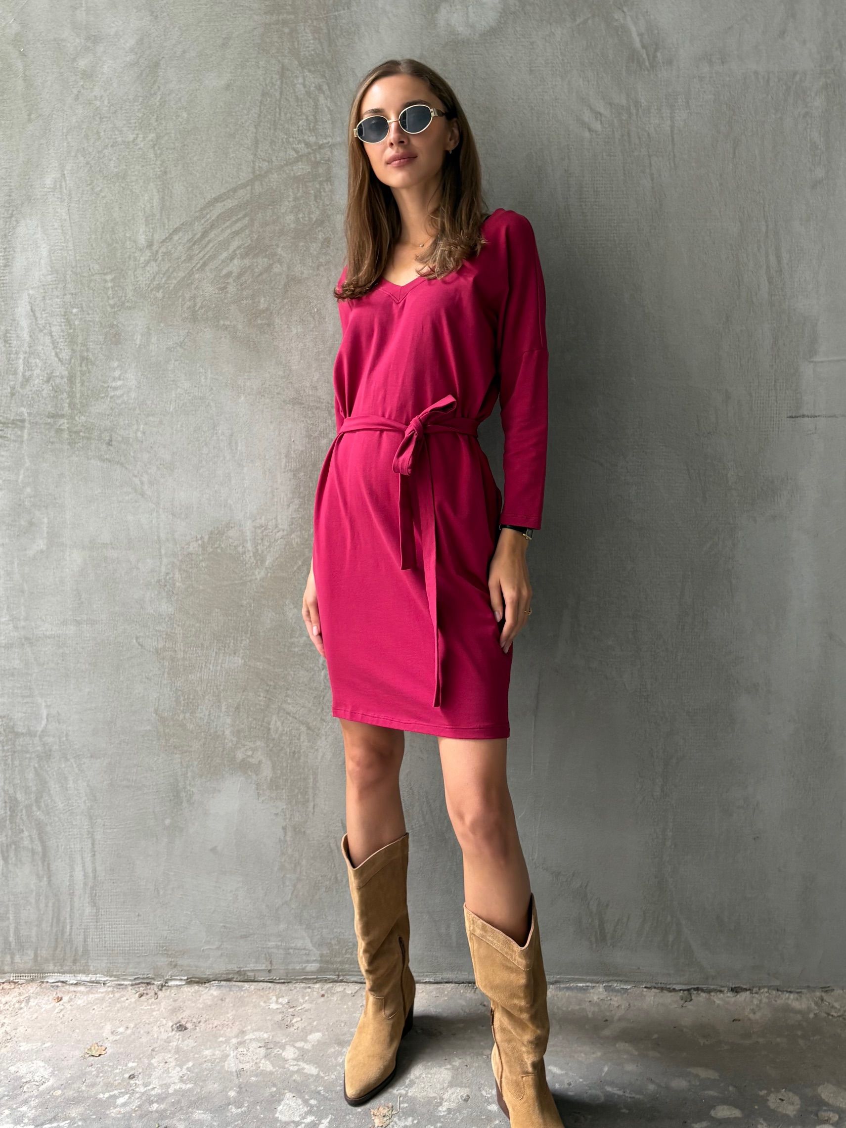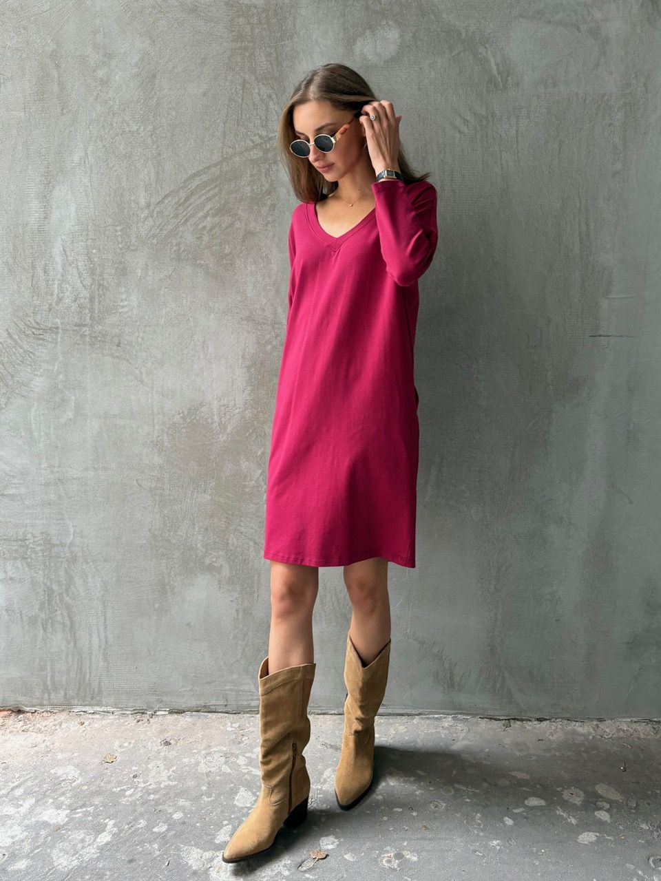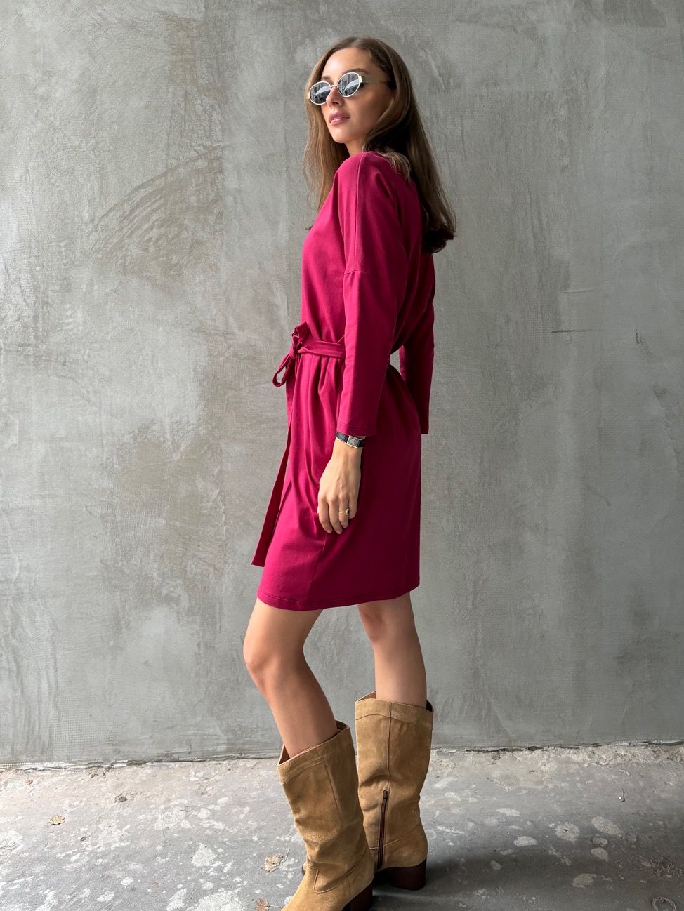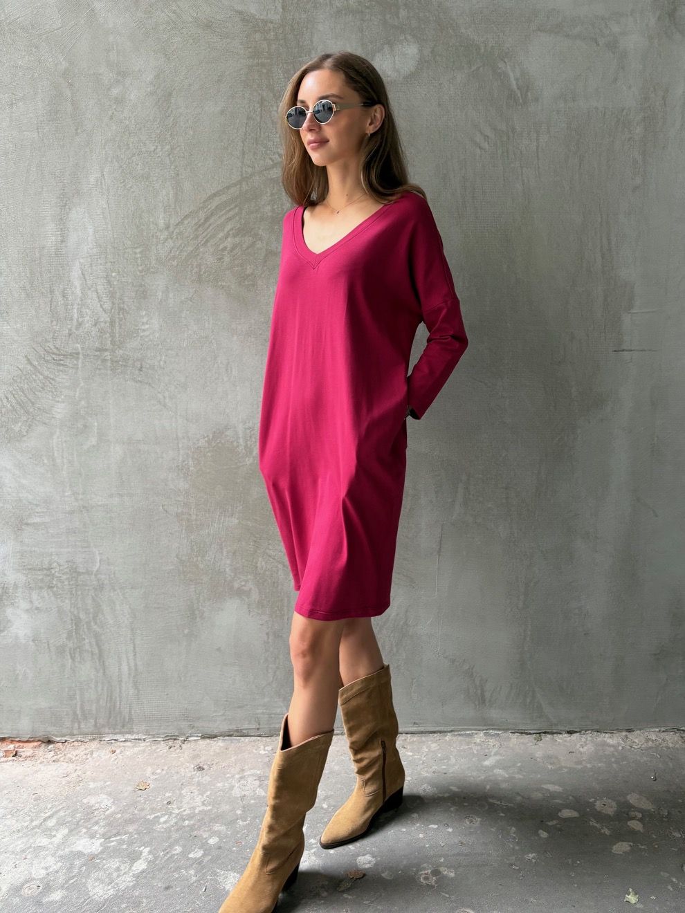 Czerwono wiśniowo bordo Bawełna 100% ciepła całoroczna, dekolt V, zwężany rękaw i krój lekko zwężany ku dołowi