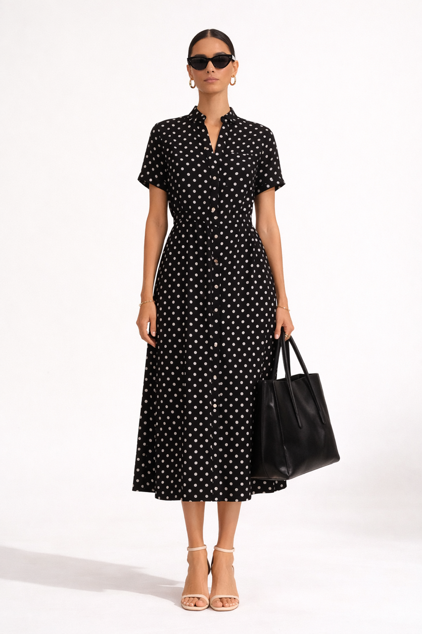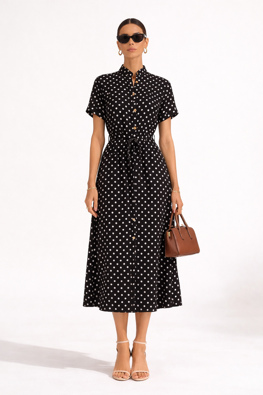 Pasek - wewnętrzne wiązanie, którym można uwydatnić talię lub wręcz odwrotnie - tylko delikatnie wiążąc – uzyskać bardzo wygodną luźną sukienkę.