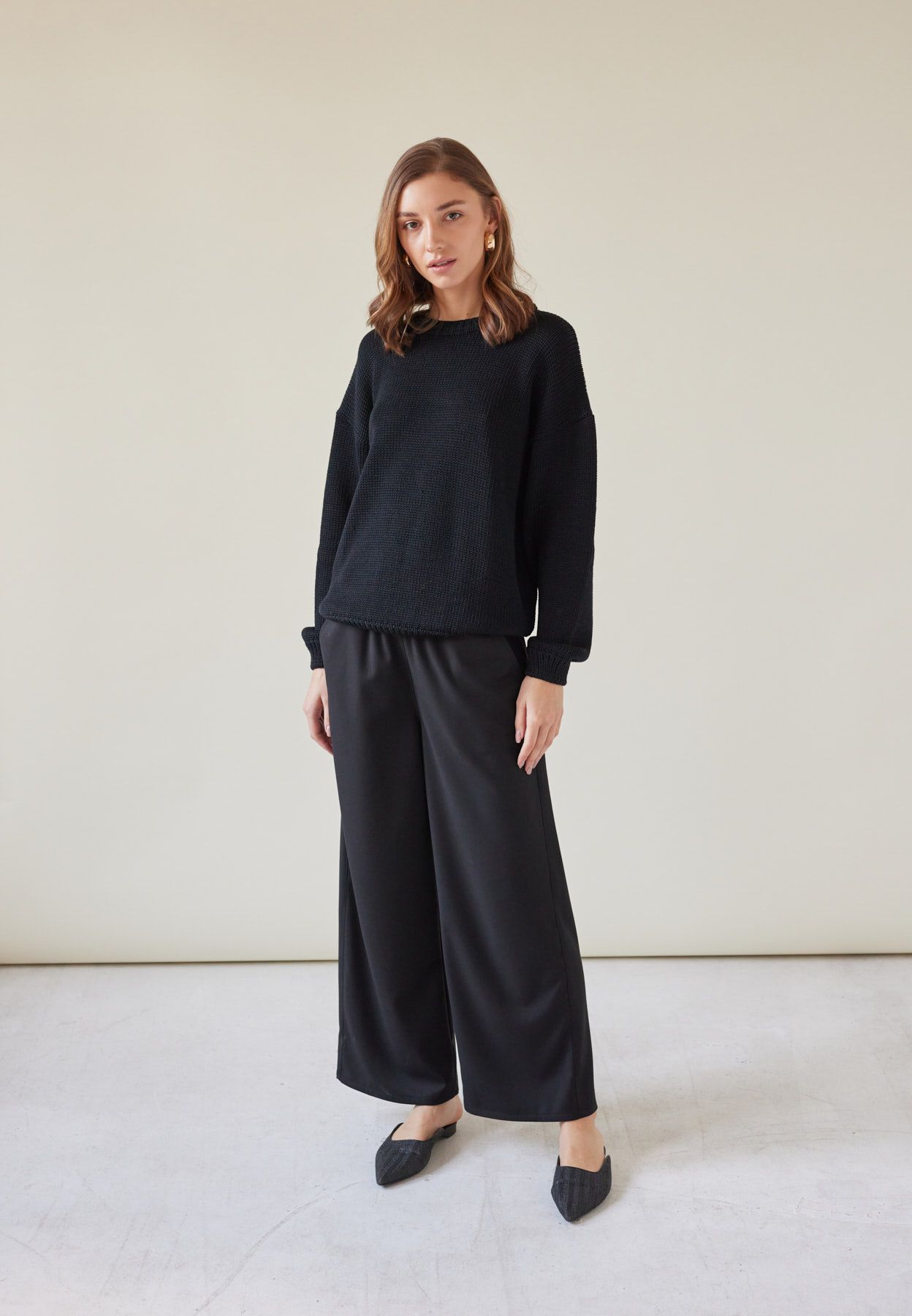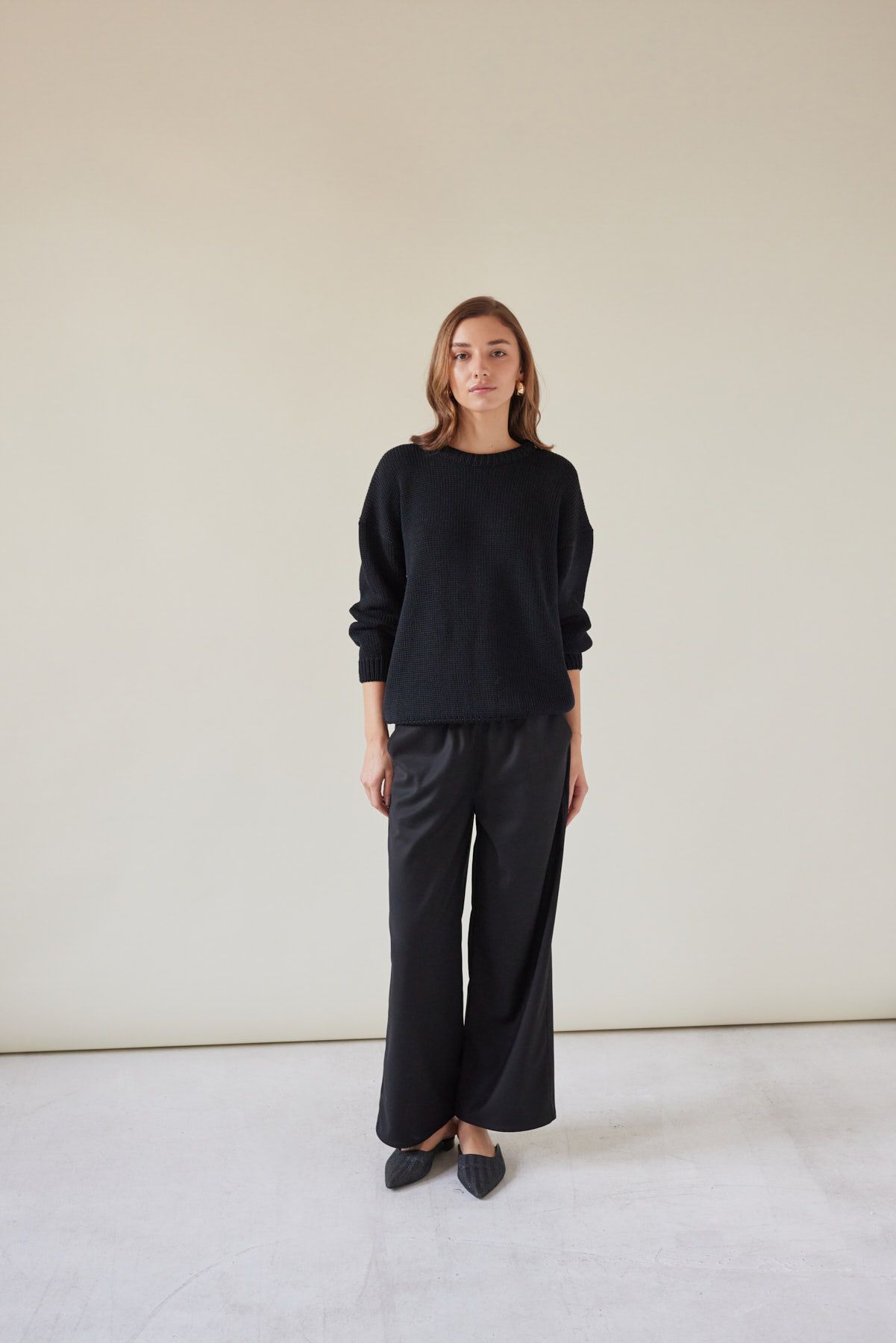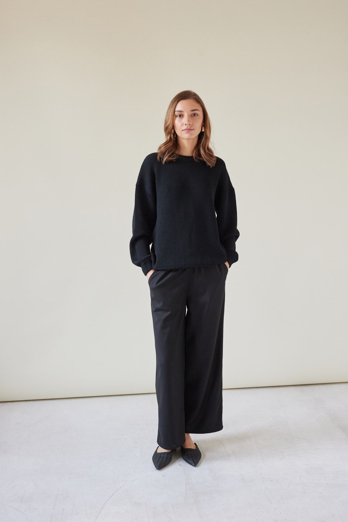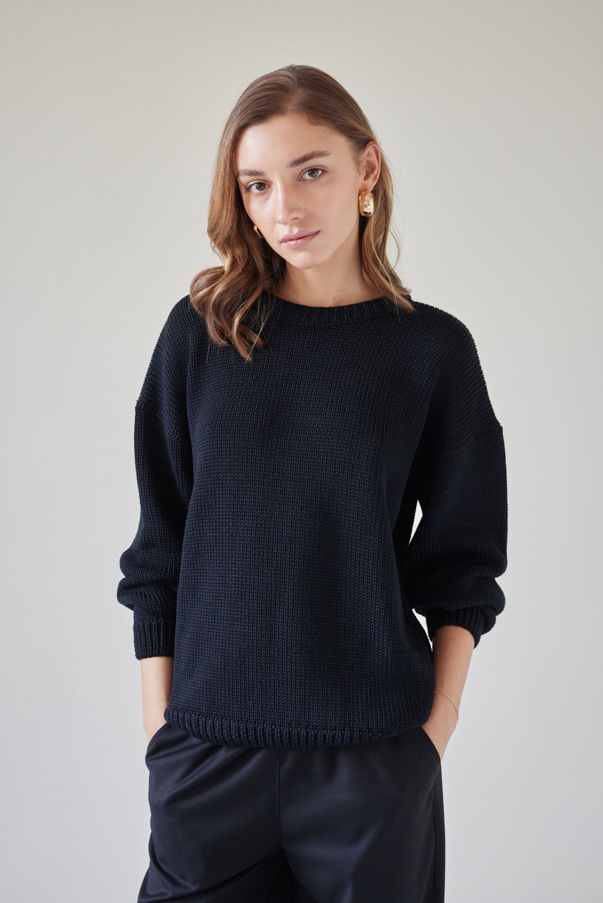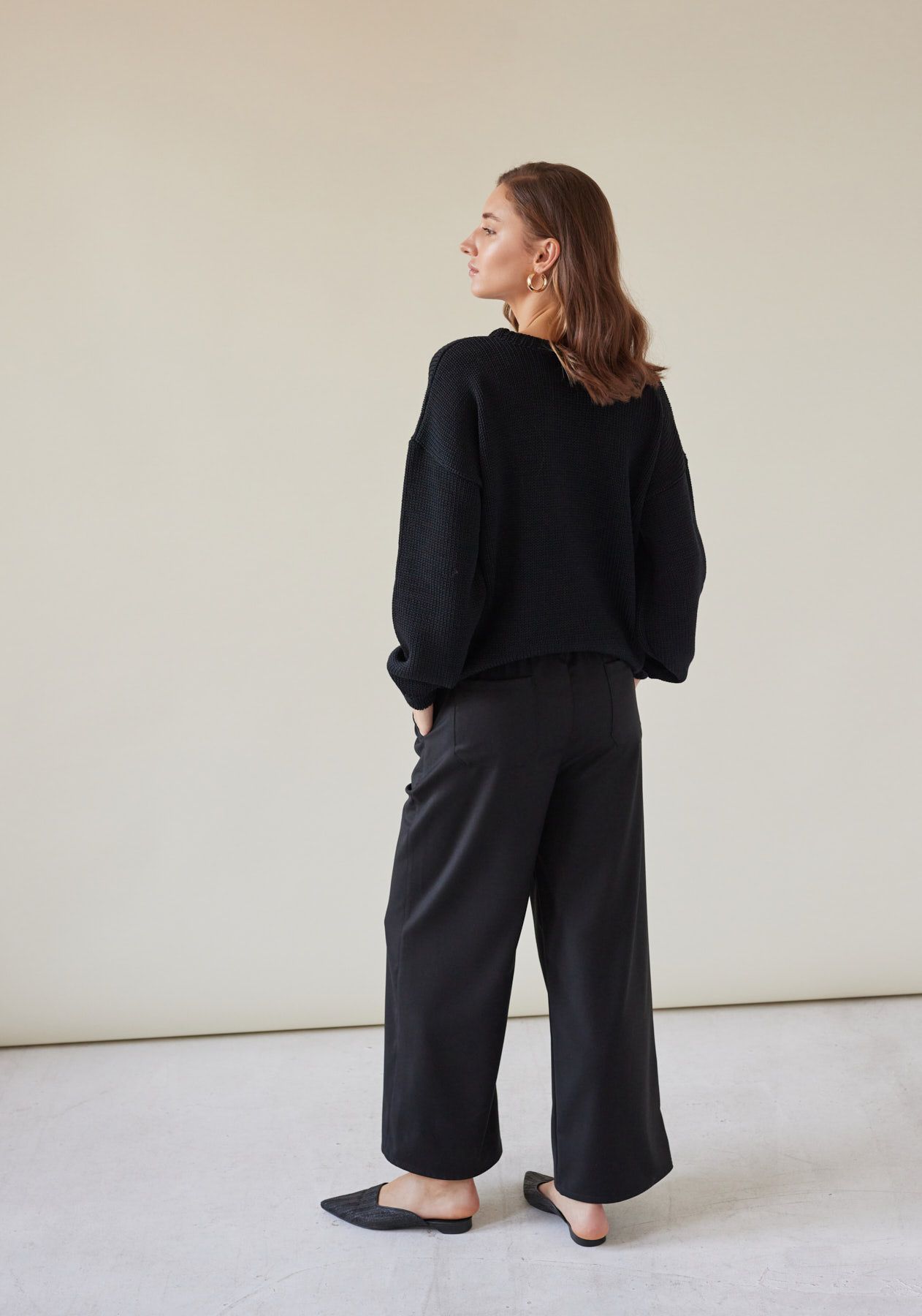 Ciepły sweter z wełny merino w kolorze glebokiej czerni