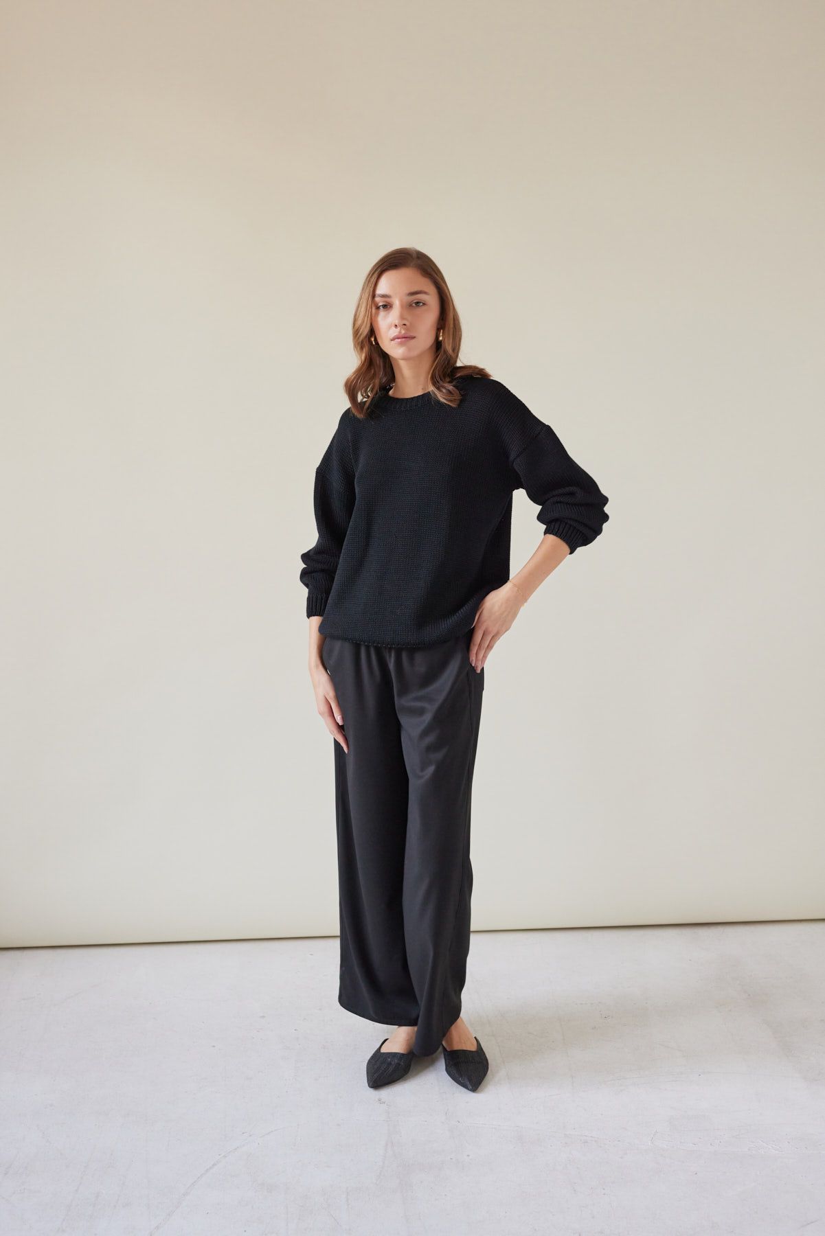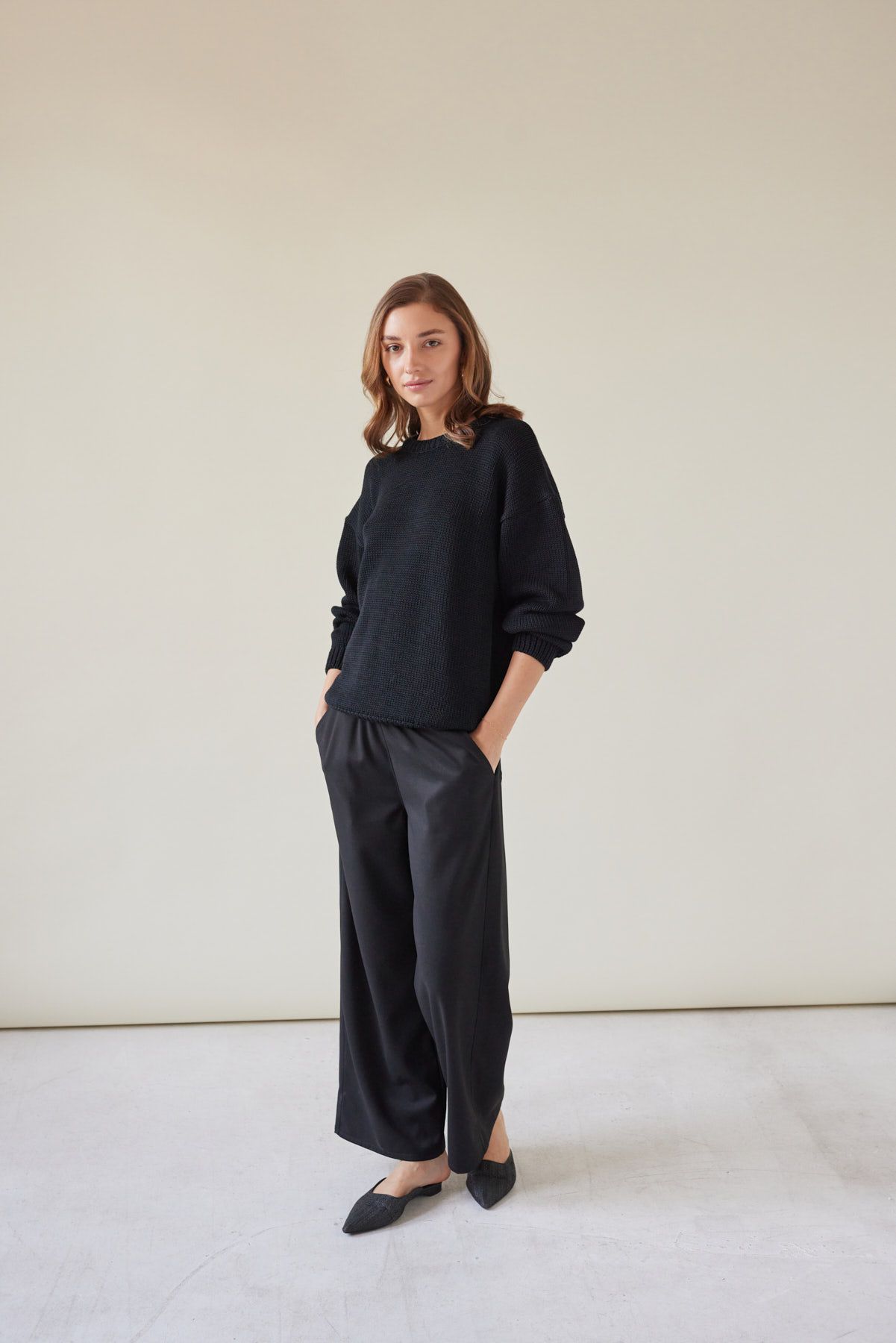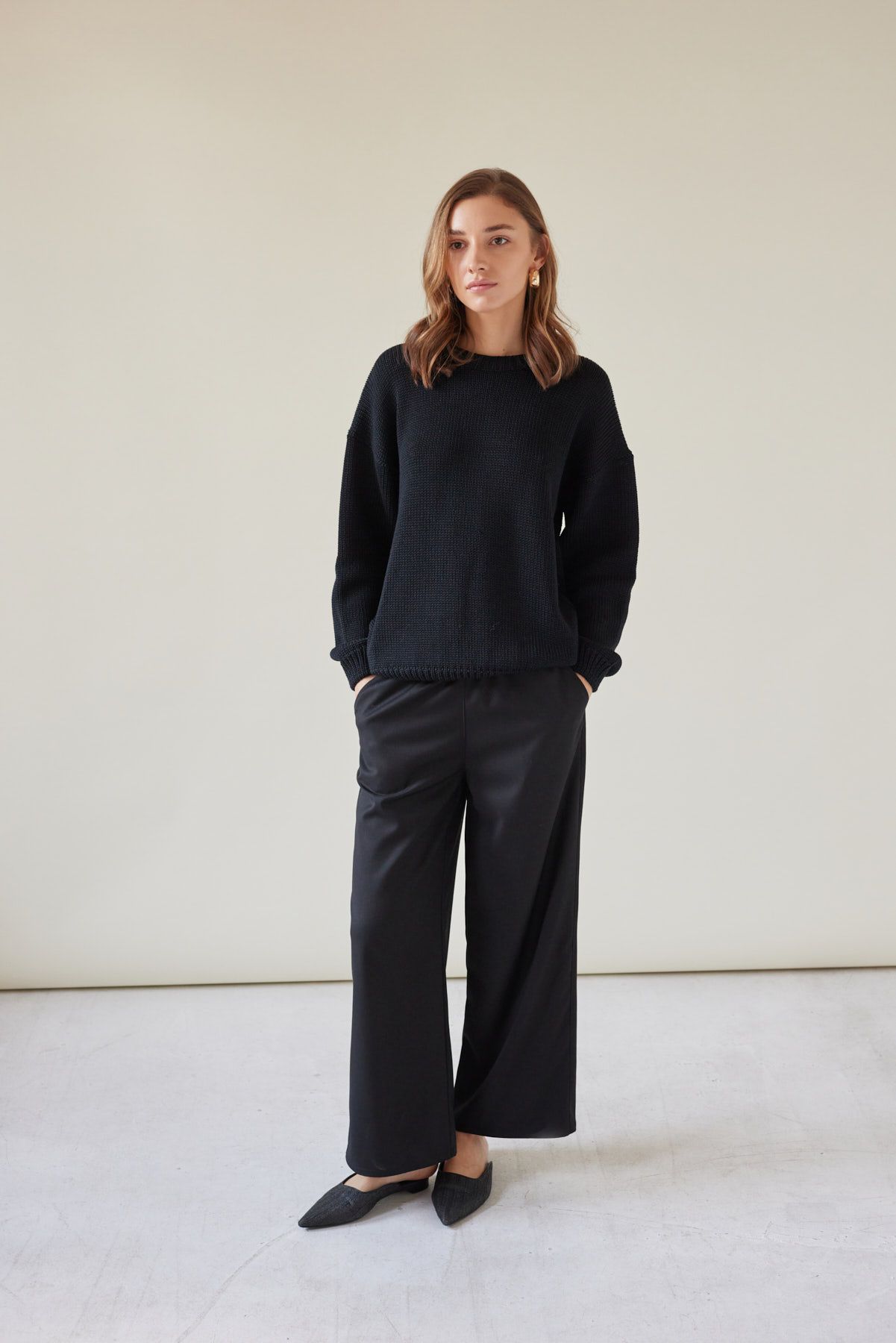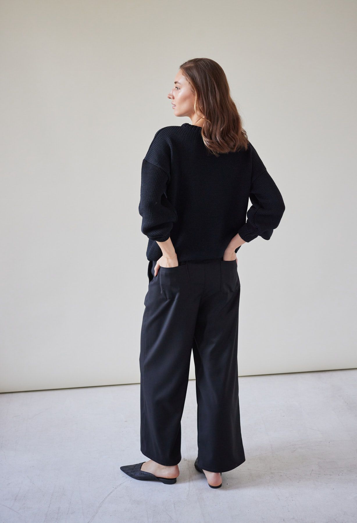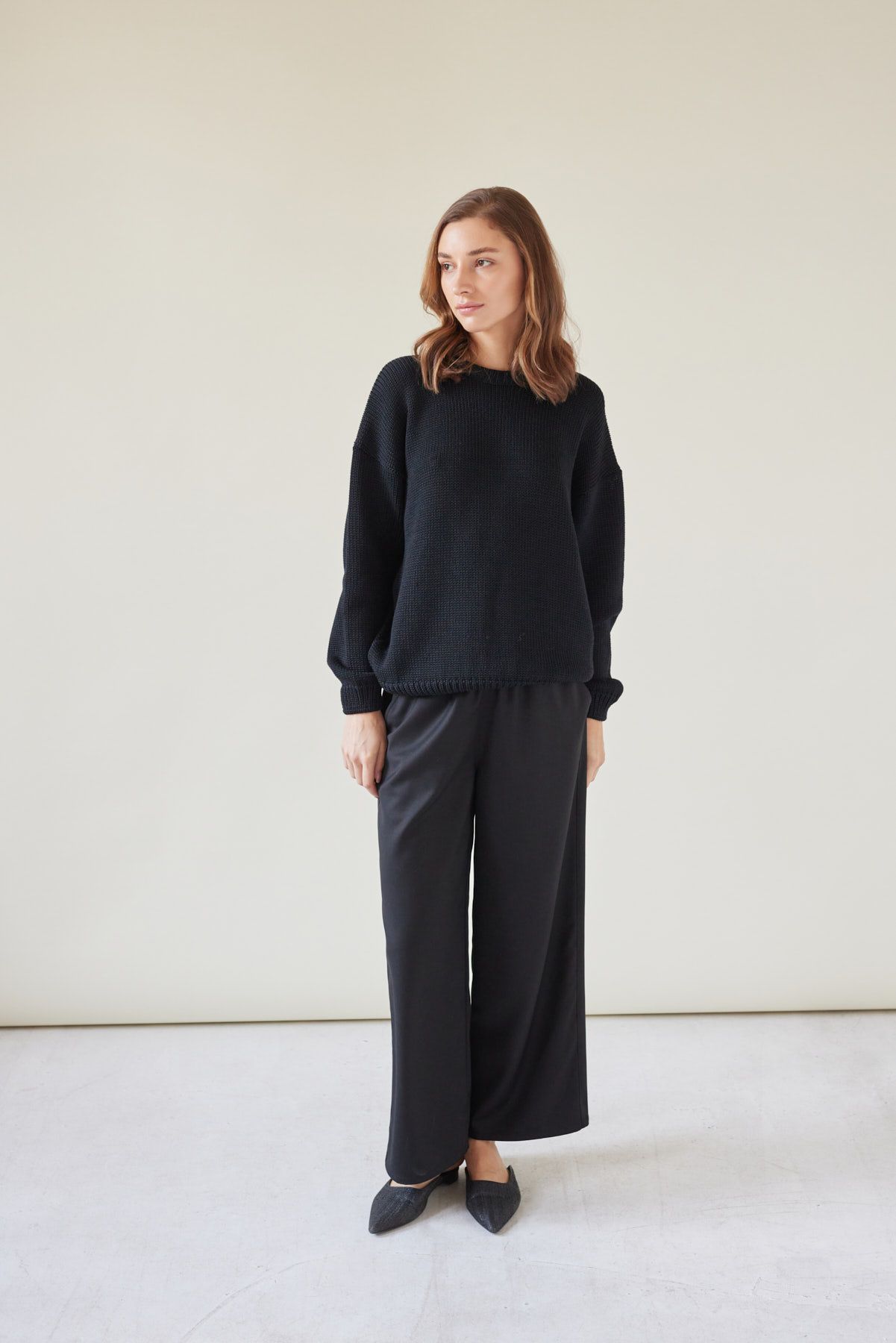 Ciepły sweter z wełny merino w kolorze glebokiej czerni