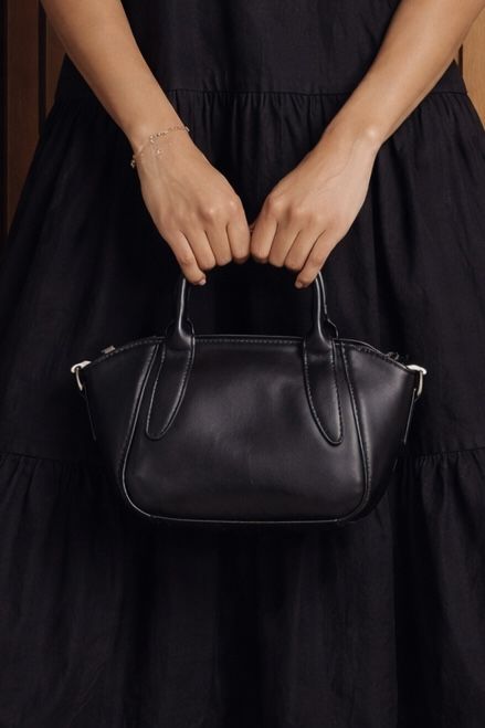 The bag has not only a small handle but also a classic long strap, and its exterior closure – seemingly very complicated – is actually a classic magnetic clasp.