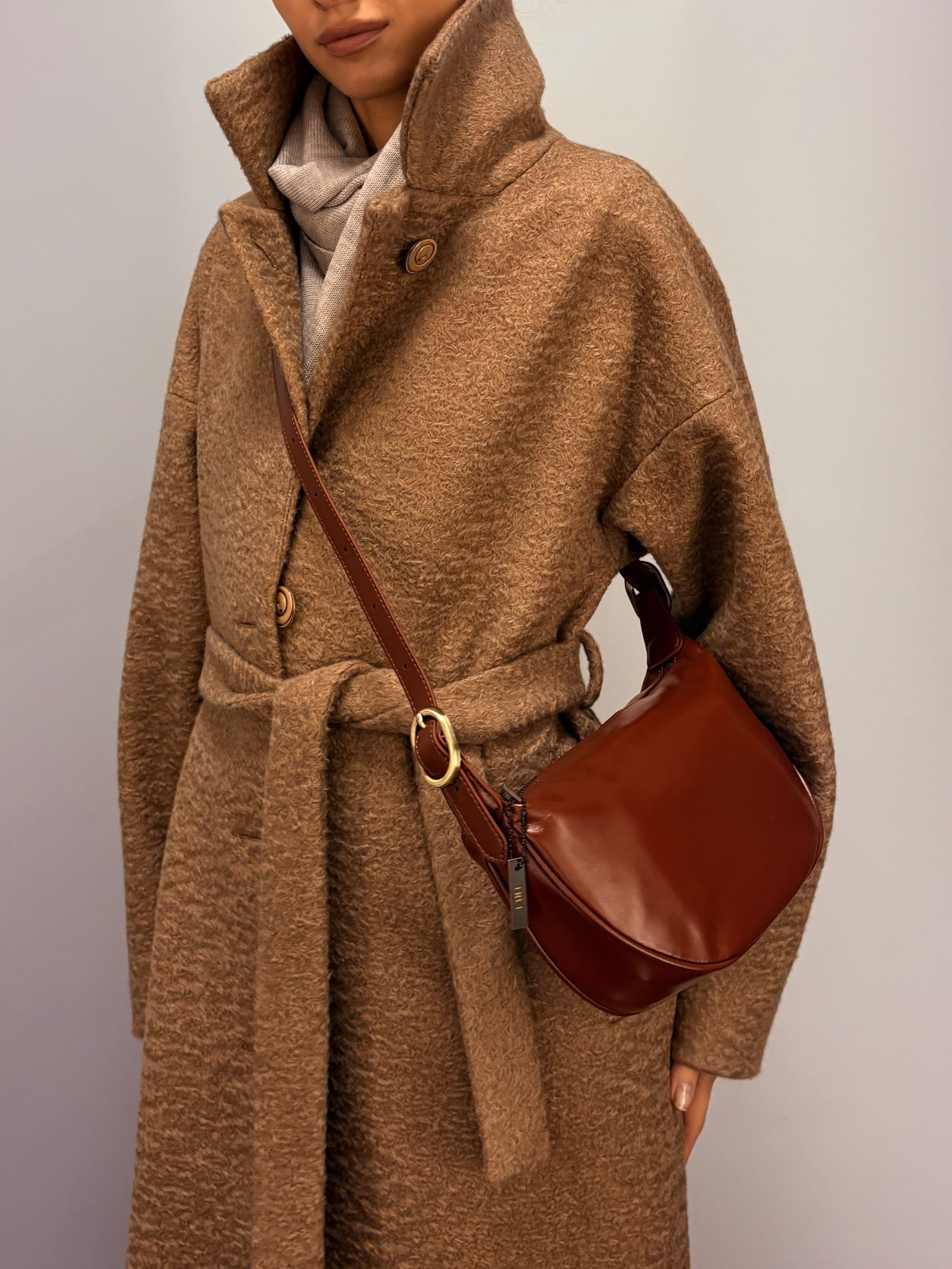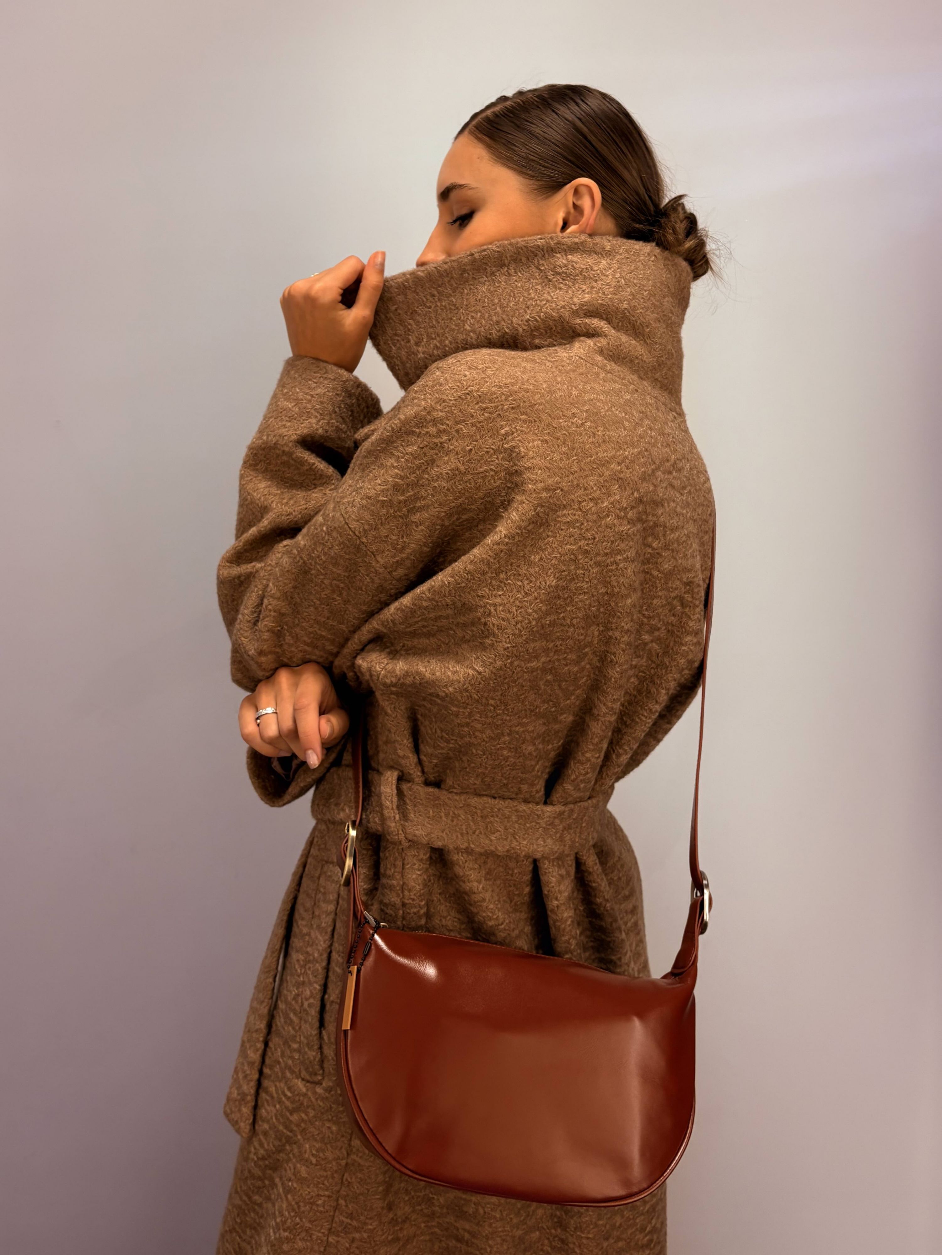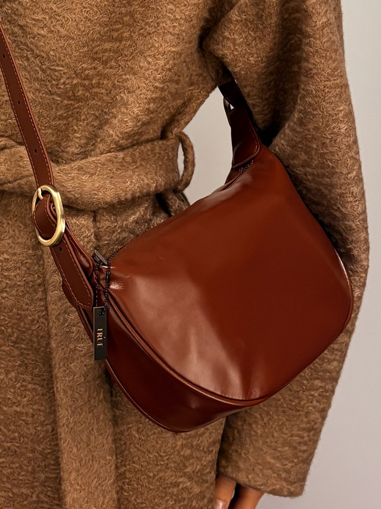 Ponadczasowa skórzana średniej wielkości brązowo koniakowo klasyczna skórzana torebka