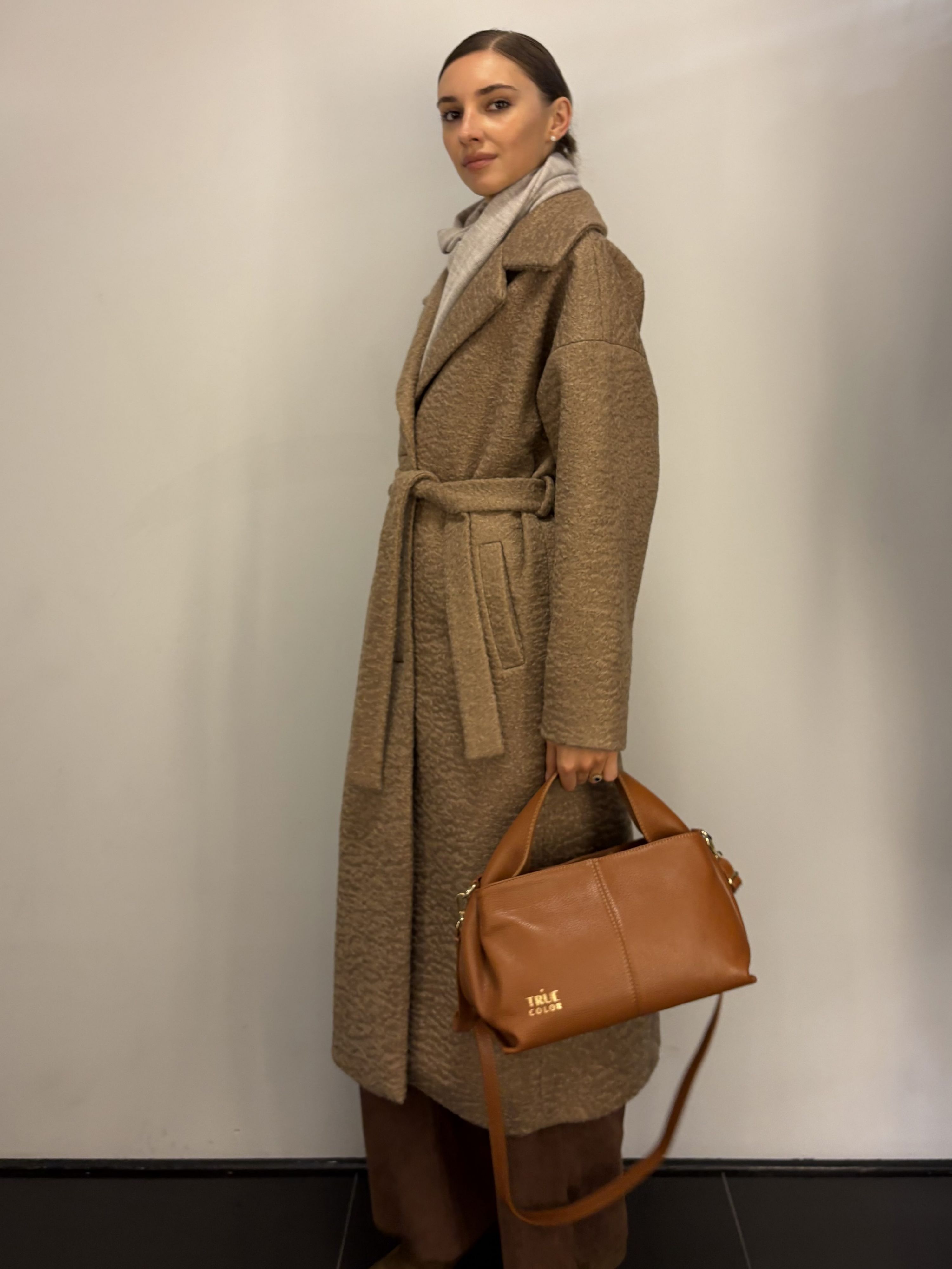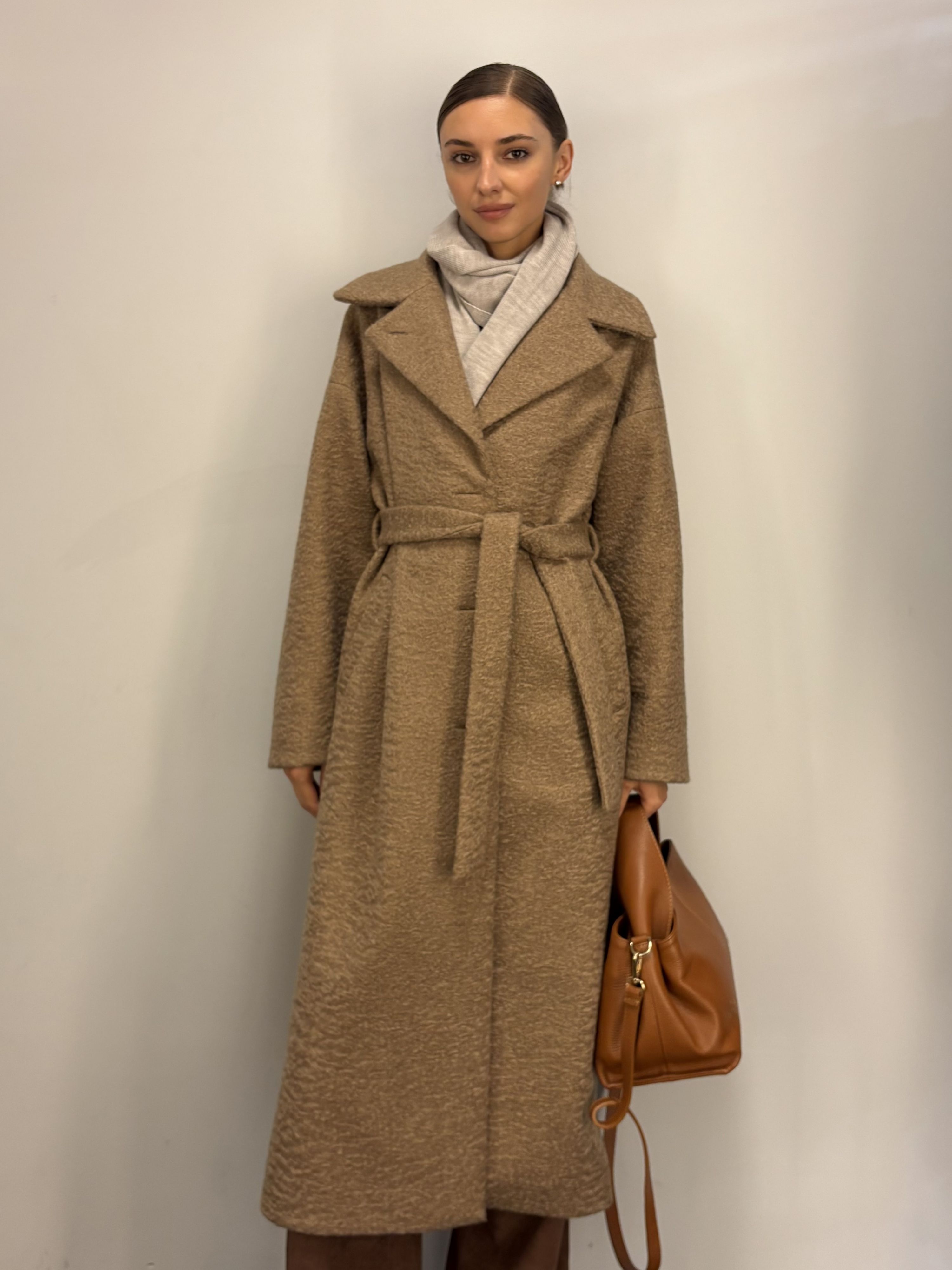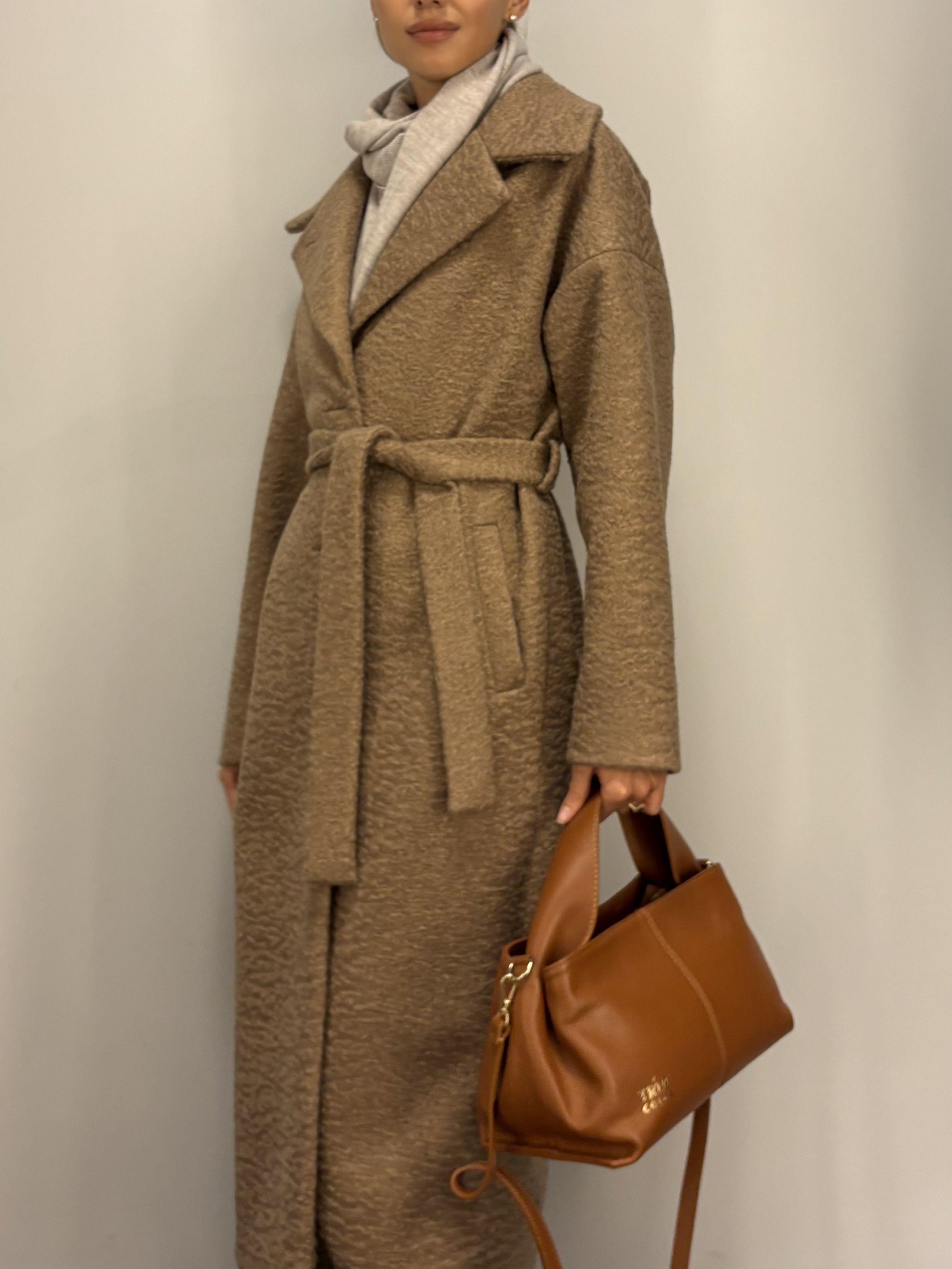 Wełniana Camelowa Beżowa Kurtka Krótki Płaszczyk 100% wełna