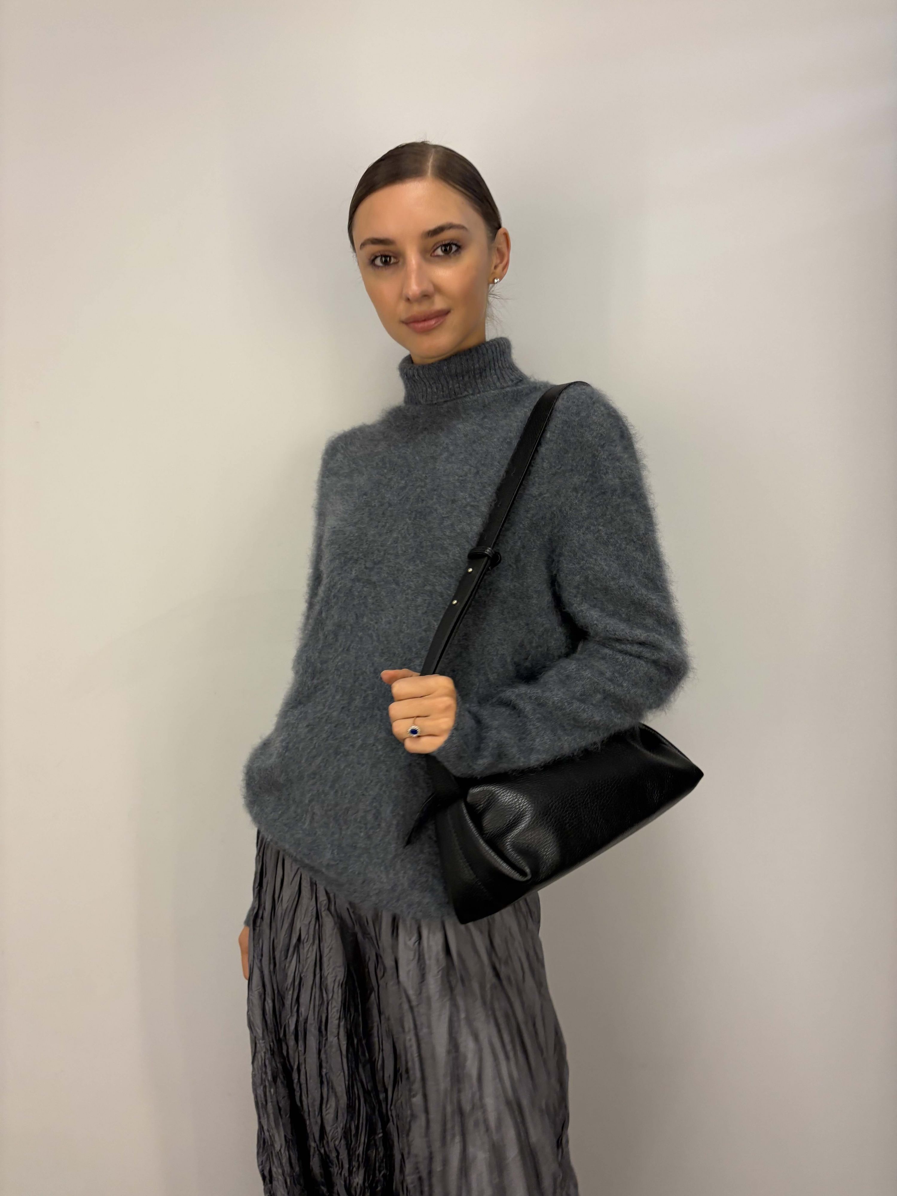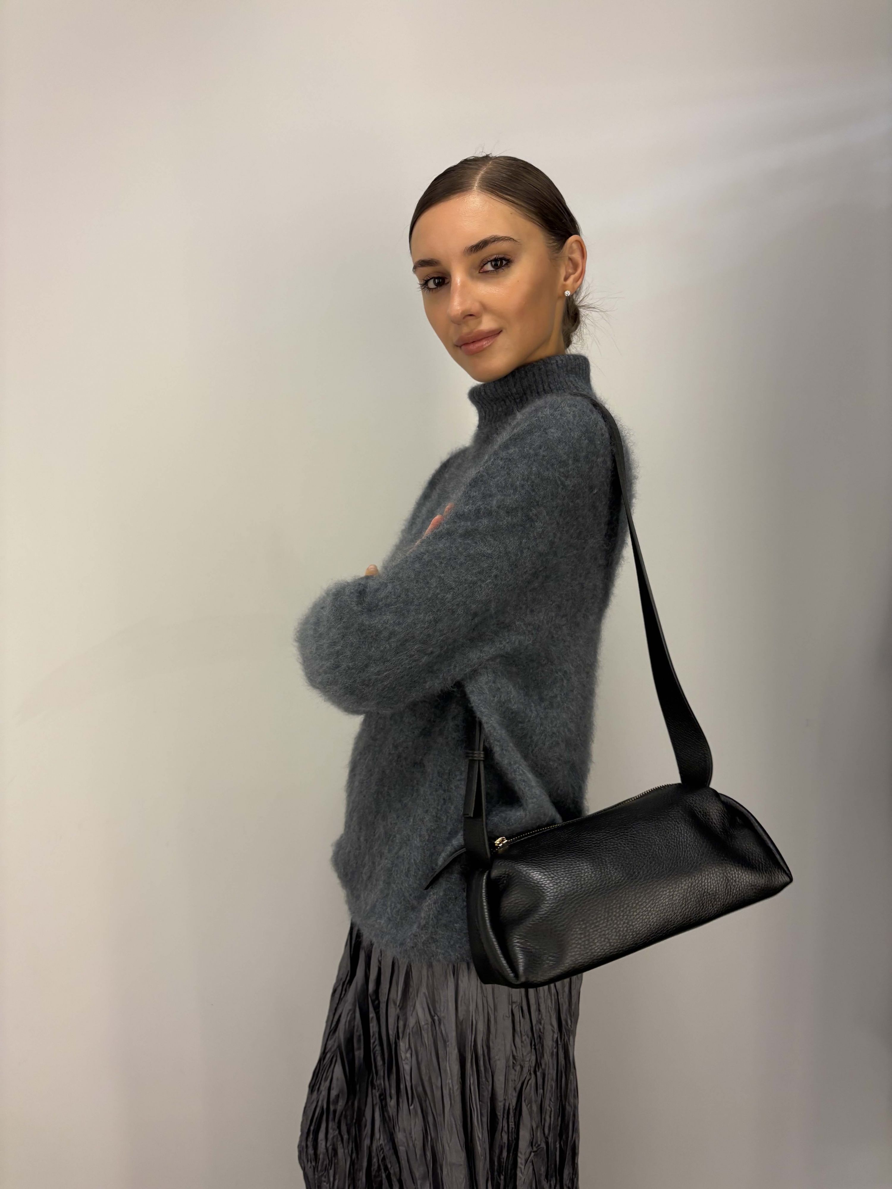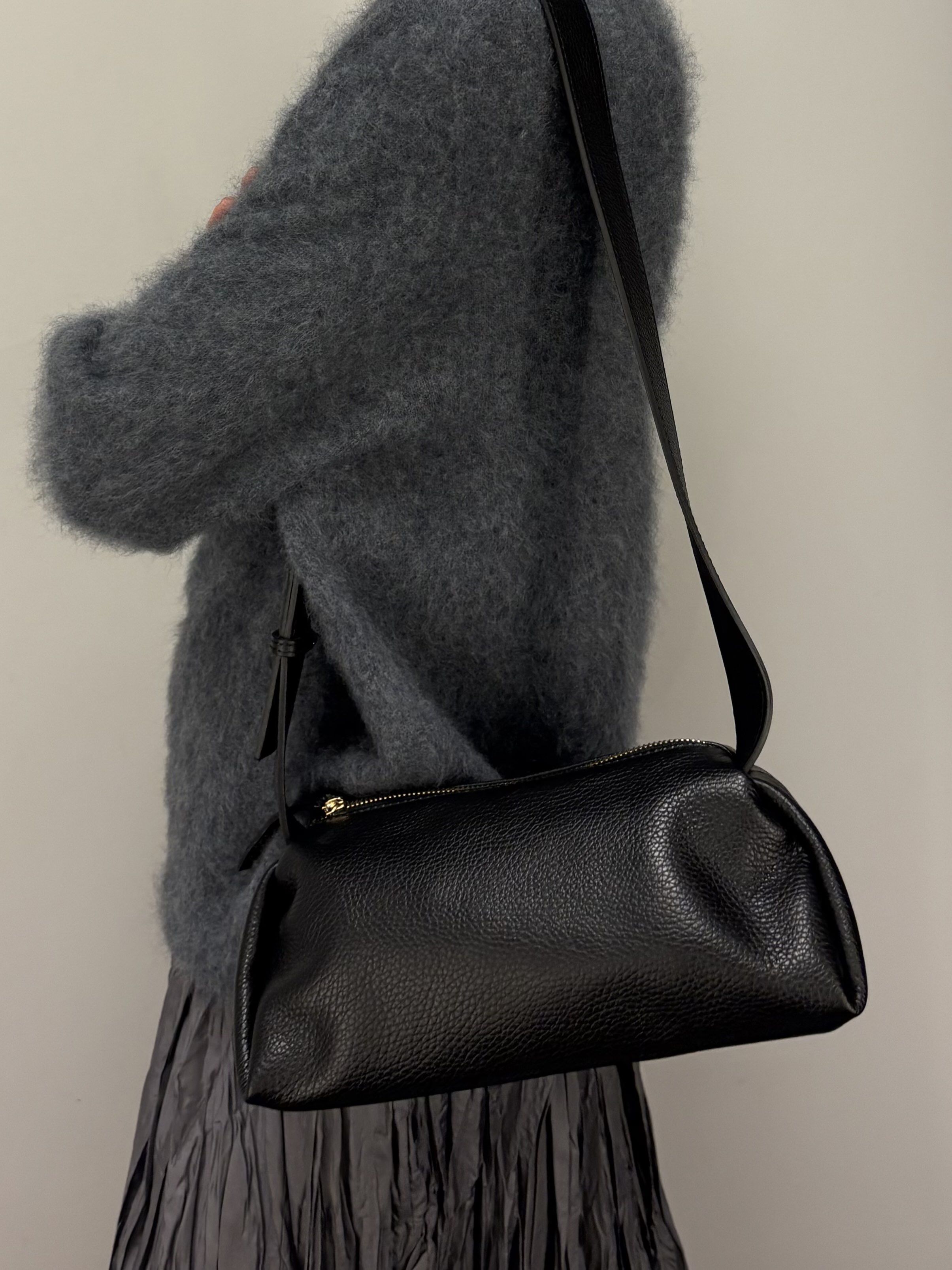 Torebka o podłużnym ponadczasowym kształcie, uszyta z najwyższej jakości skóry włoskiej.