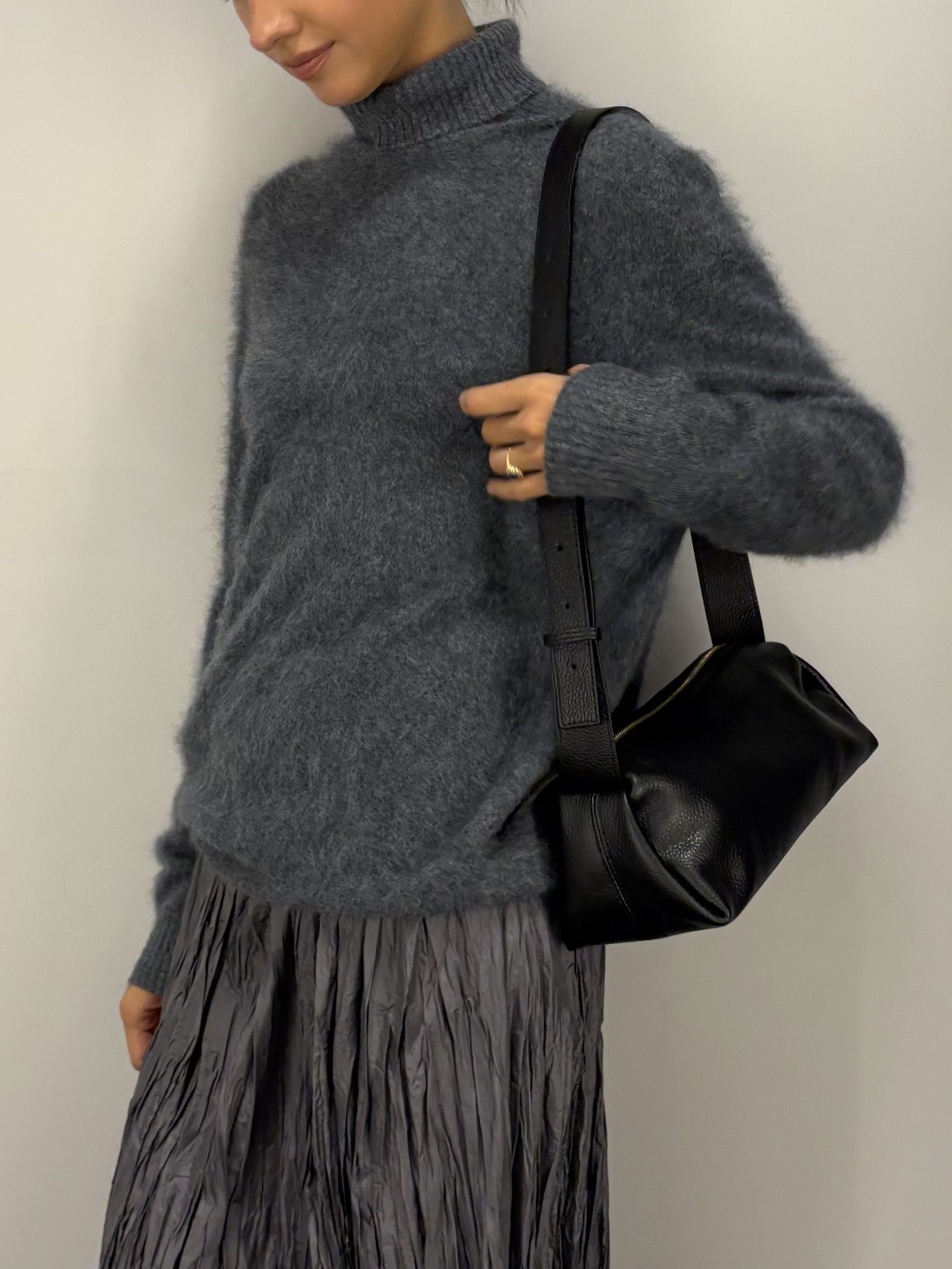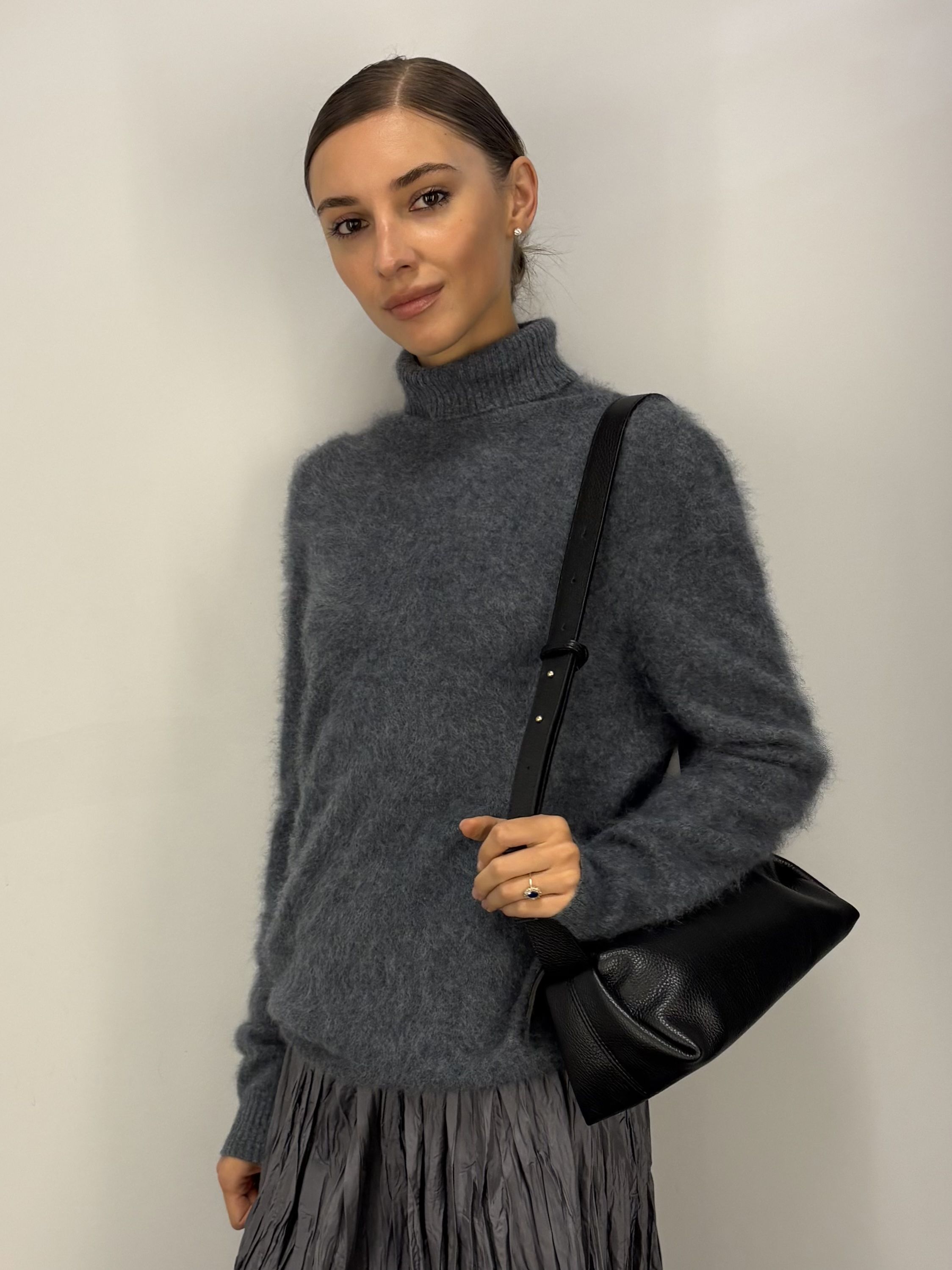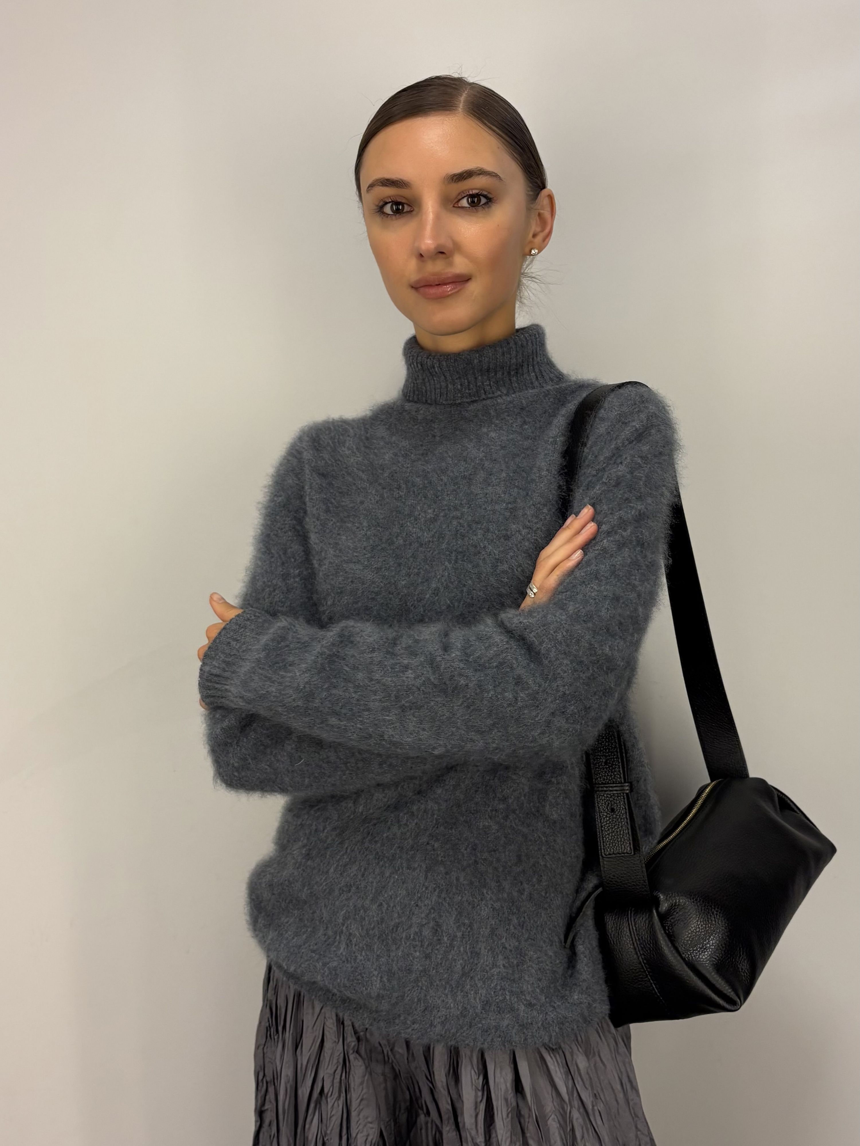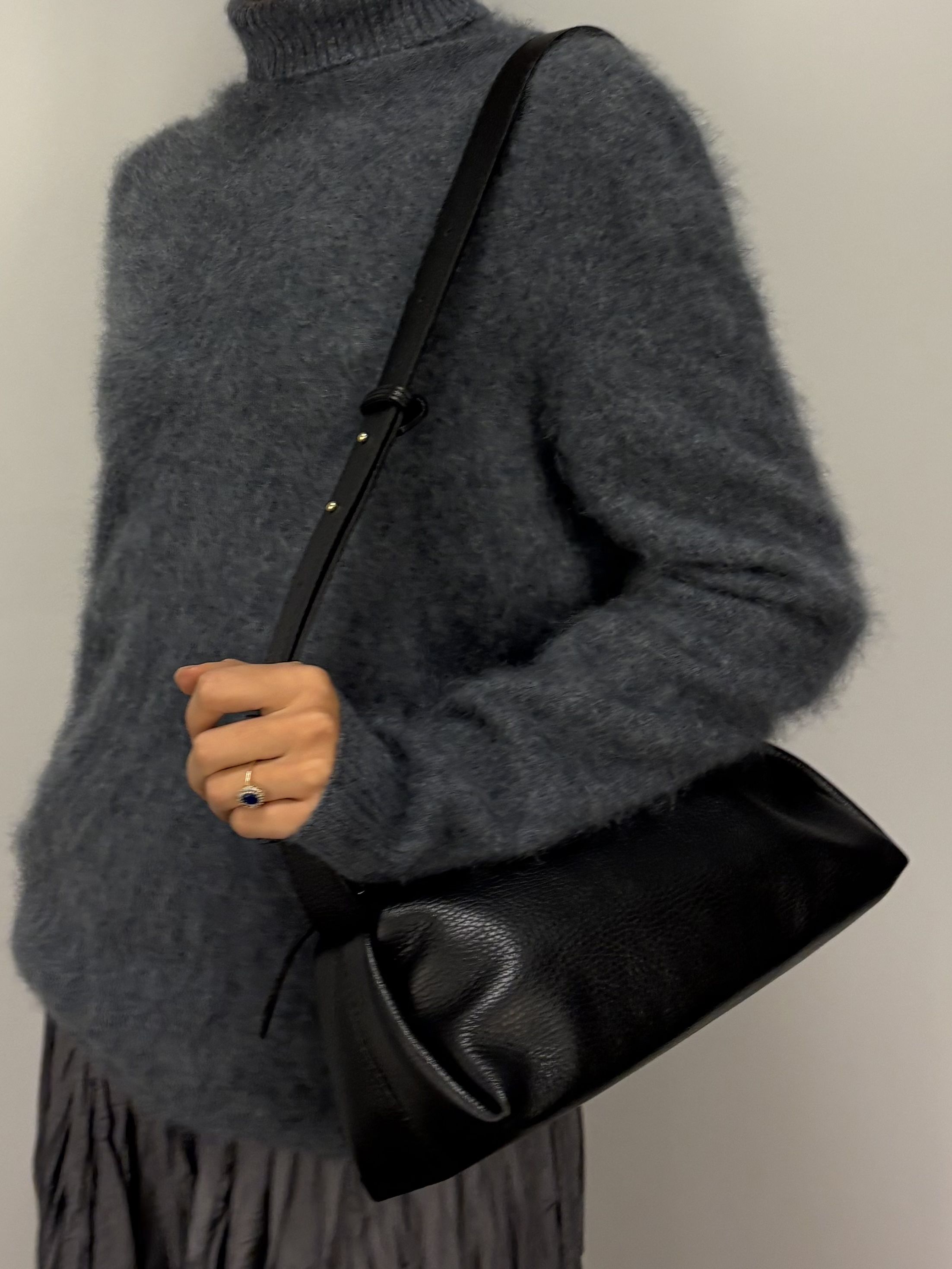 Torebka o podłużnym ponadczasowym kształcie, uszyta z najwyższej jakości skóry włoskiej.